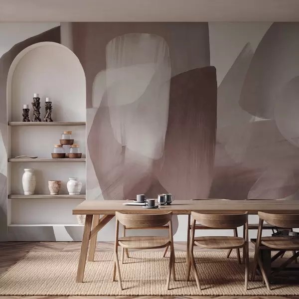 Fototapet Abstrakte former i dæmpede burgunder- og gråfarver med bløde kanter og overlappende lag Nr. w09642v2