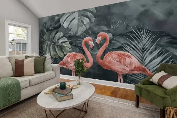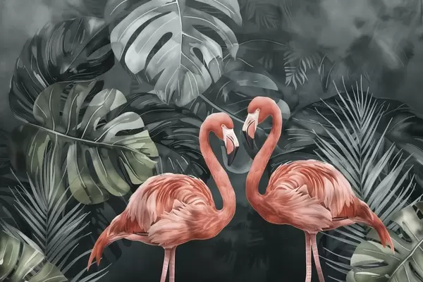 Fototapet Et par flamingoer blandt tropiske planter Nr. w09687