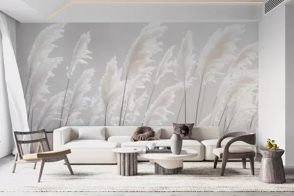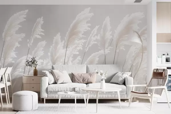 Fototapet Blødt hvidt pampasgræs i det milde morgenlys Nr. w09717