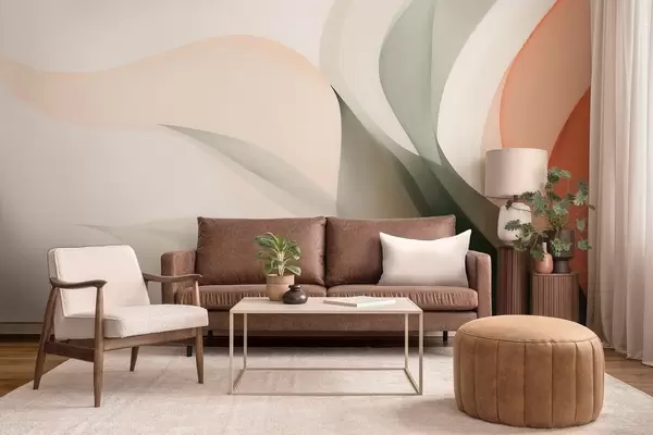 Fototapet Abstrakte pastelfarvede bølger i orange og grønne nuancer Nr. w09718