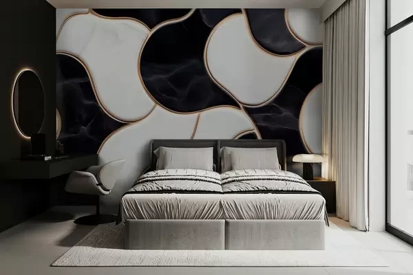 Fototapet Abstrakt efterligning af et marmormotiv i sort-hvide nuancer med gule linjer Nr. w09733