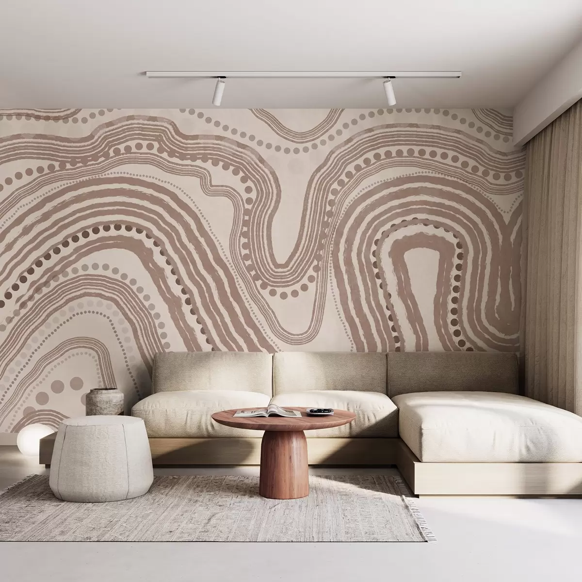 Fototapet Abstrakte brune og beige bølgelinjer og prikker, moderne tekstureret kunst Nr. w09747v1