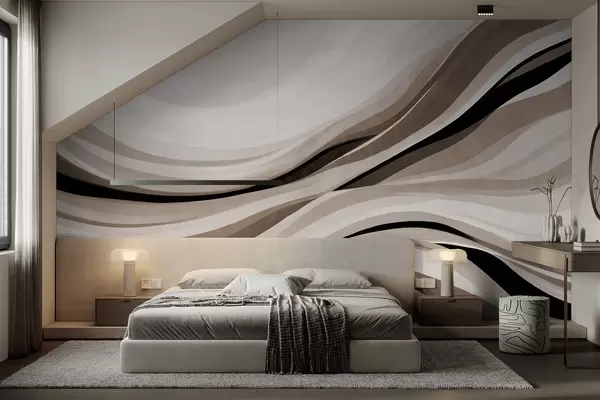 Fototapet Abstrakte bølgelinjer i beige og sorte nuancer på en lys baggrund, tekstureret kunst Nr. w09748