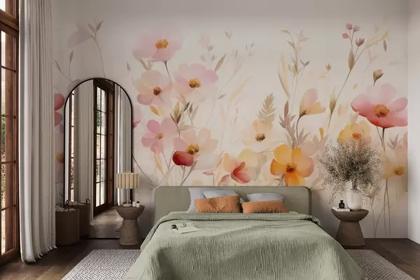 Fototapet Abstrakt felt af vilde blomster i pastelfarver, akvarelmaleri-stil Nr. w09757