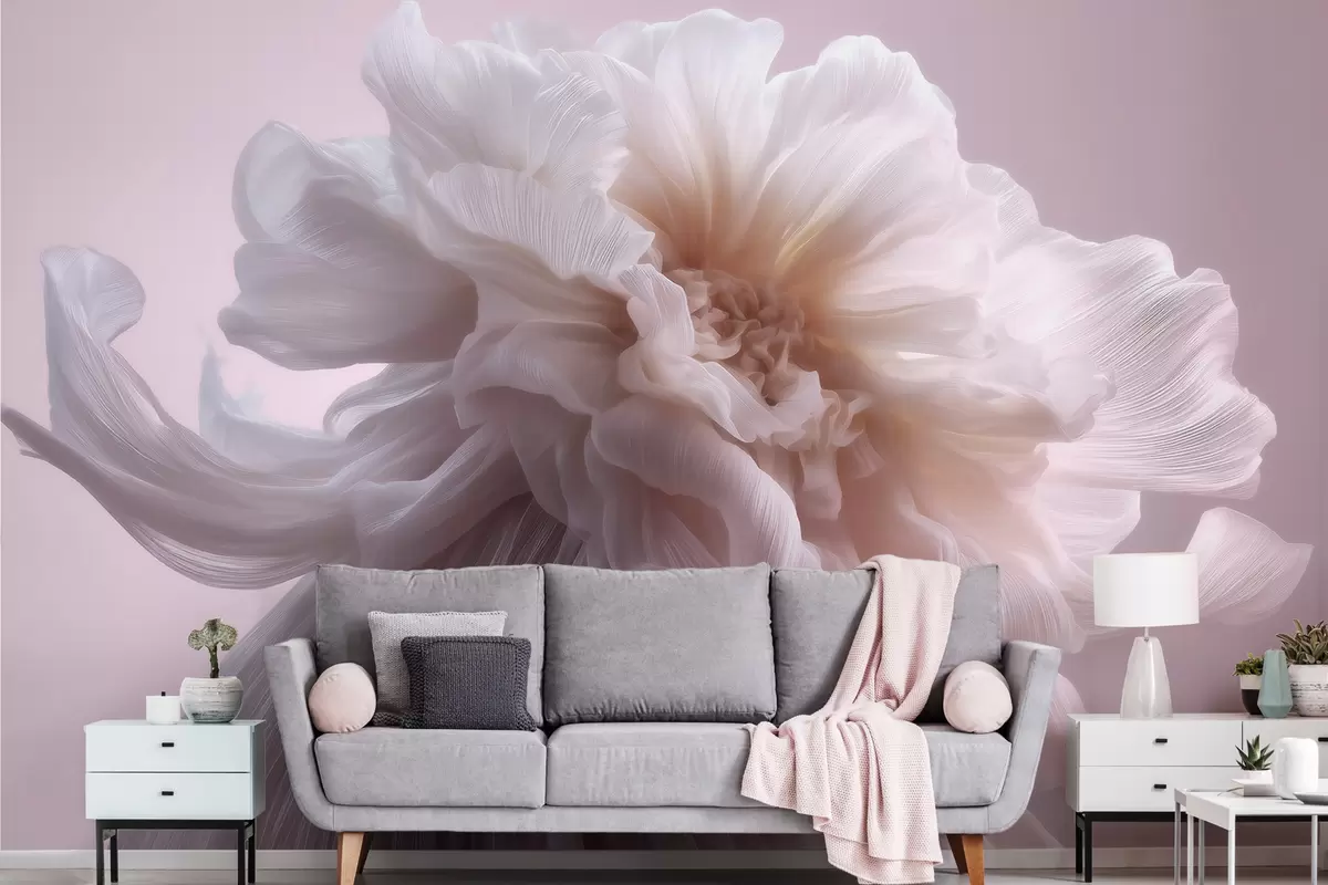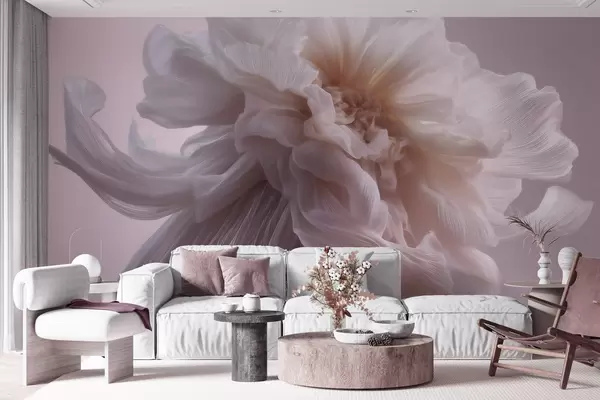 Fototapet Voluminøs silkeblomst i bløde lyserøde og beige nuancer Nr. w09809