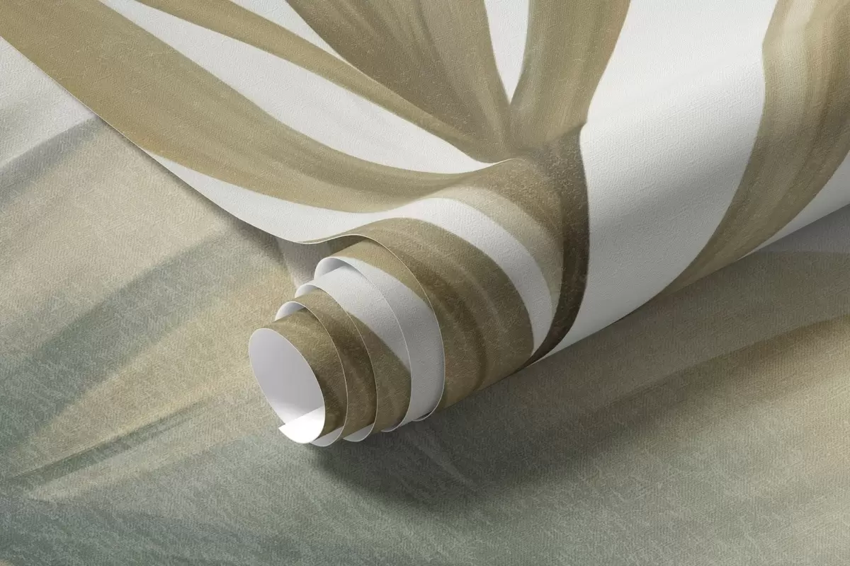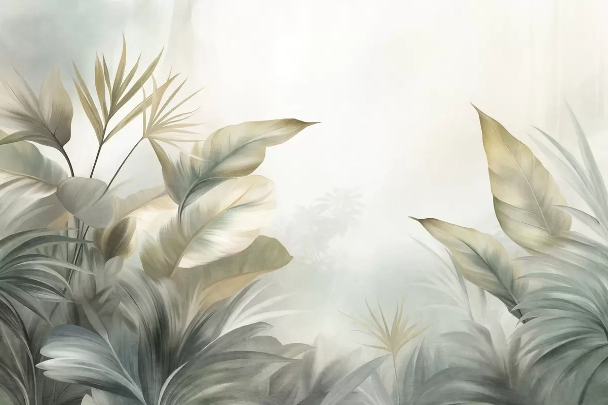 Fototapet Store, strukturerede tropiske blade i dæmpede grønne og beige nuancer, et junglemiljø Nr. w09820