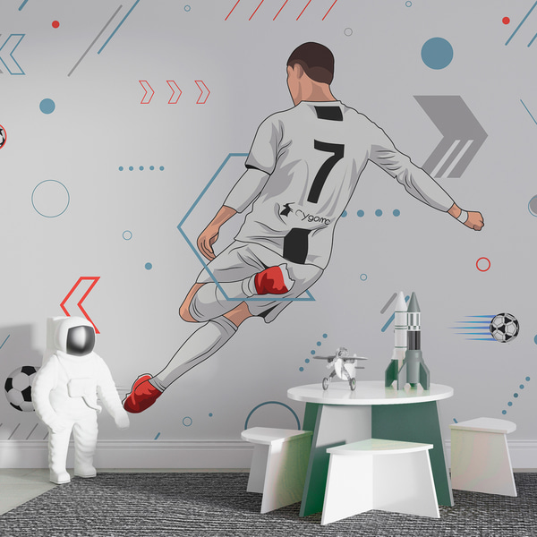 stiliseret piletræ med hængende blade på baggrund af minimalistiske bjerge i beige og blågrønne nuancer