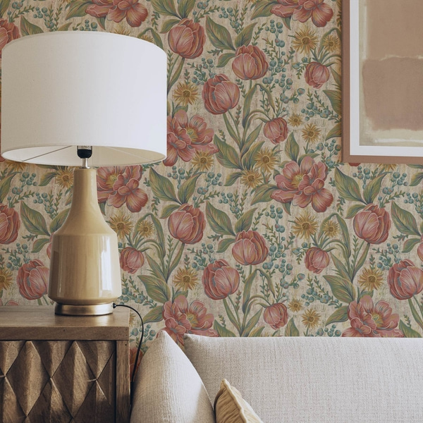 Lodrette blomsterstriber i lyserøde og lilla nuancer