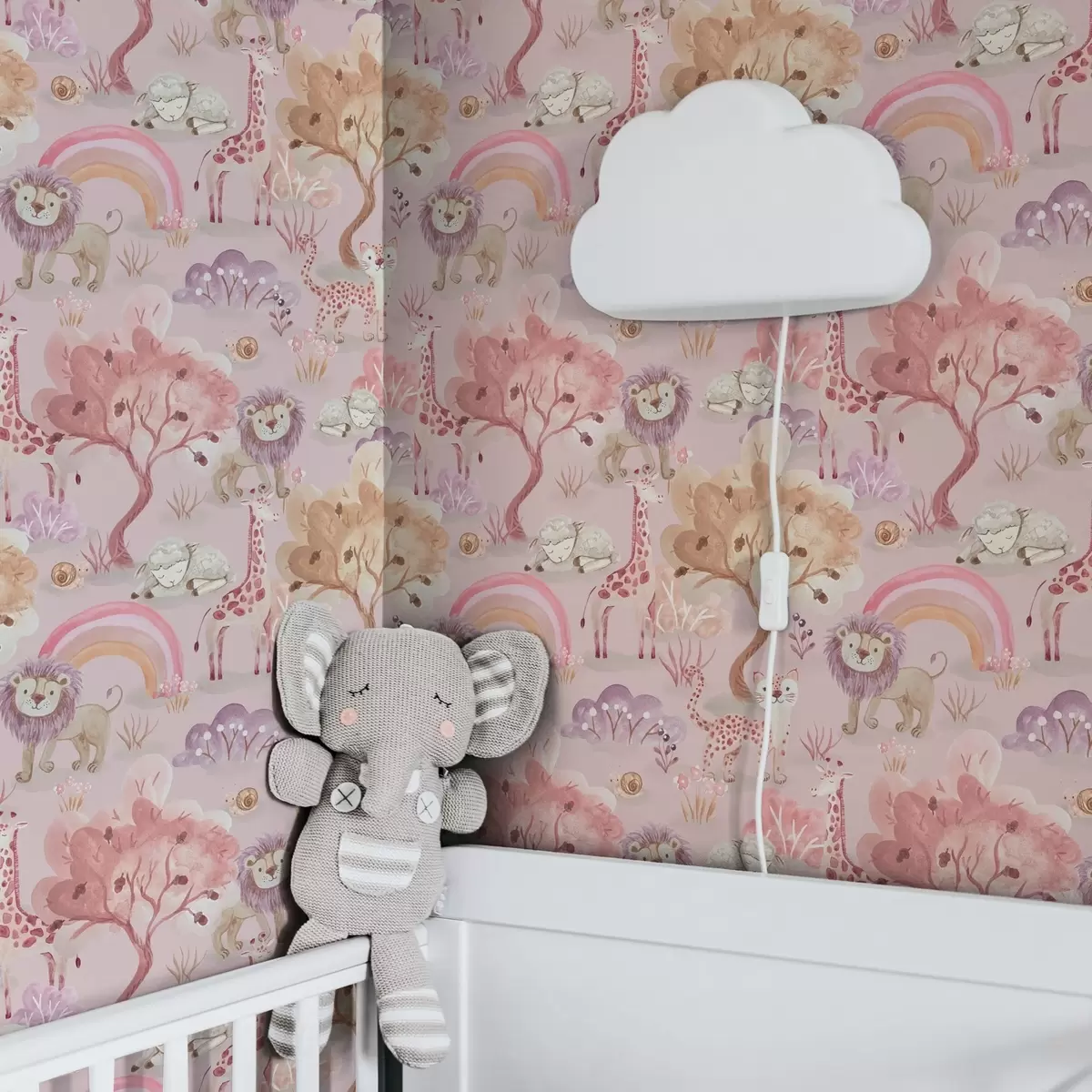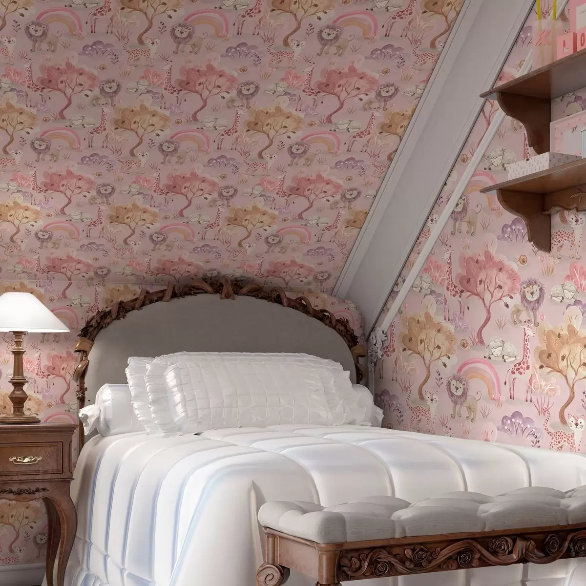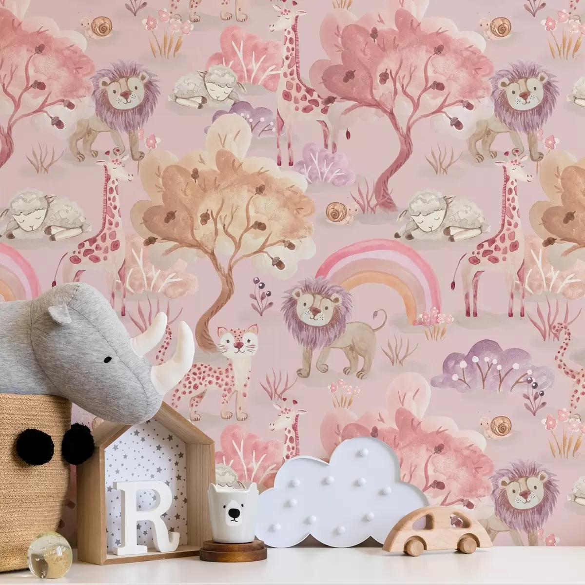 Baggrunde Løveunger, giraffer og regnbuer i en pastelfarvet skov Nr. a00112