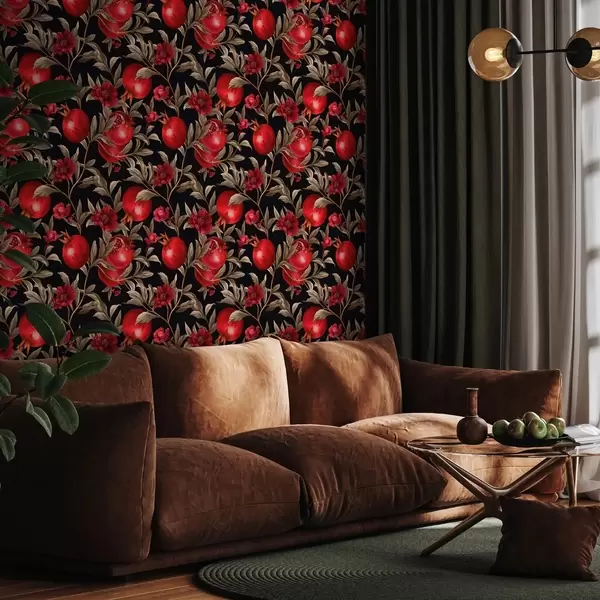 Baggrunde Granatæbler og blomster på en mørk baggrund i middelhavsstil Nr. a00115