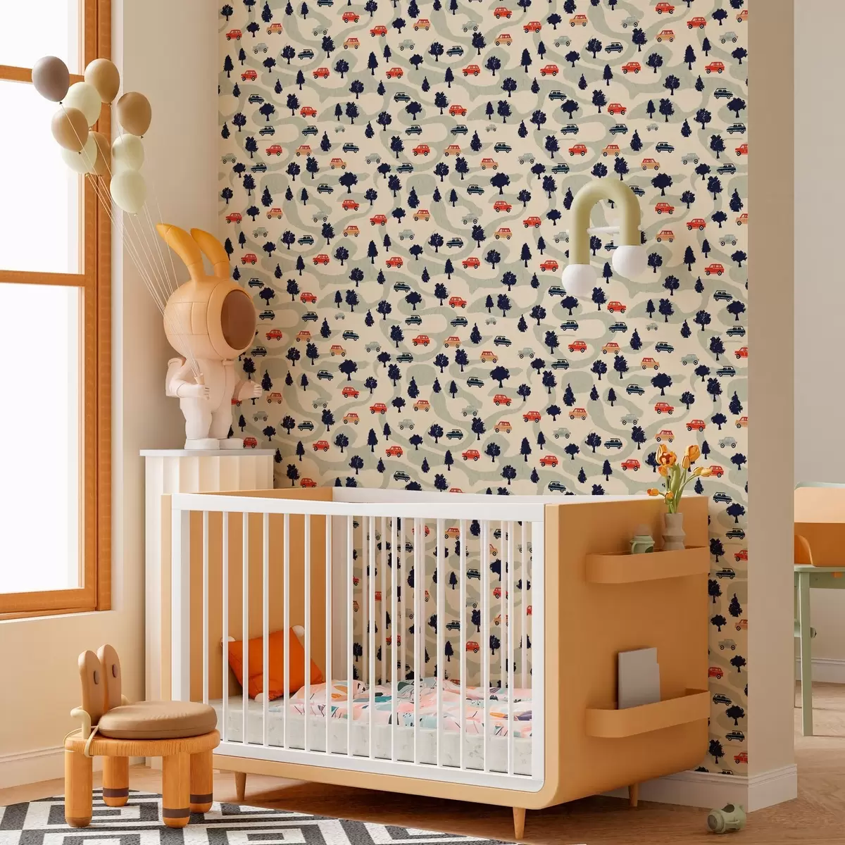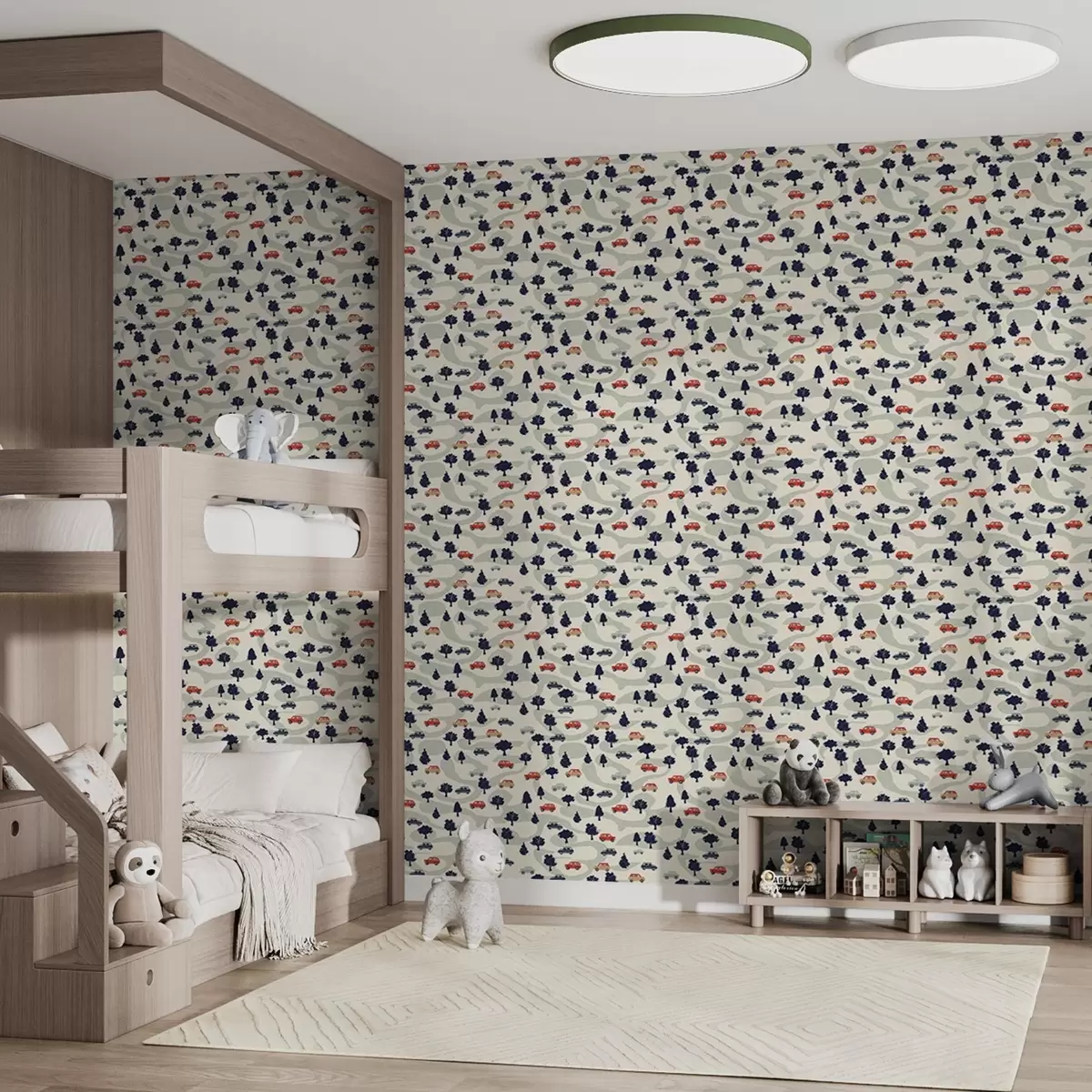 Baggrunde Sjove biler mellem træerne på en cremefarvet baggrund Nr. a00119