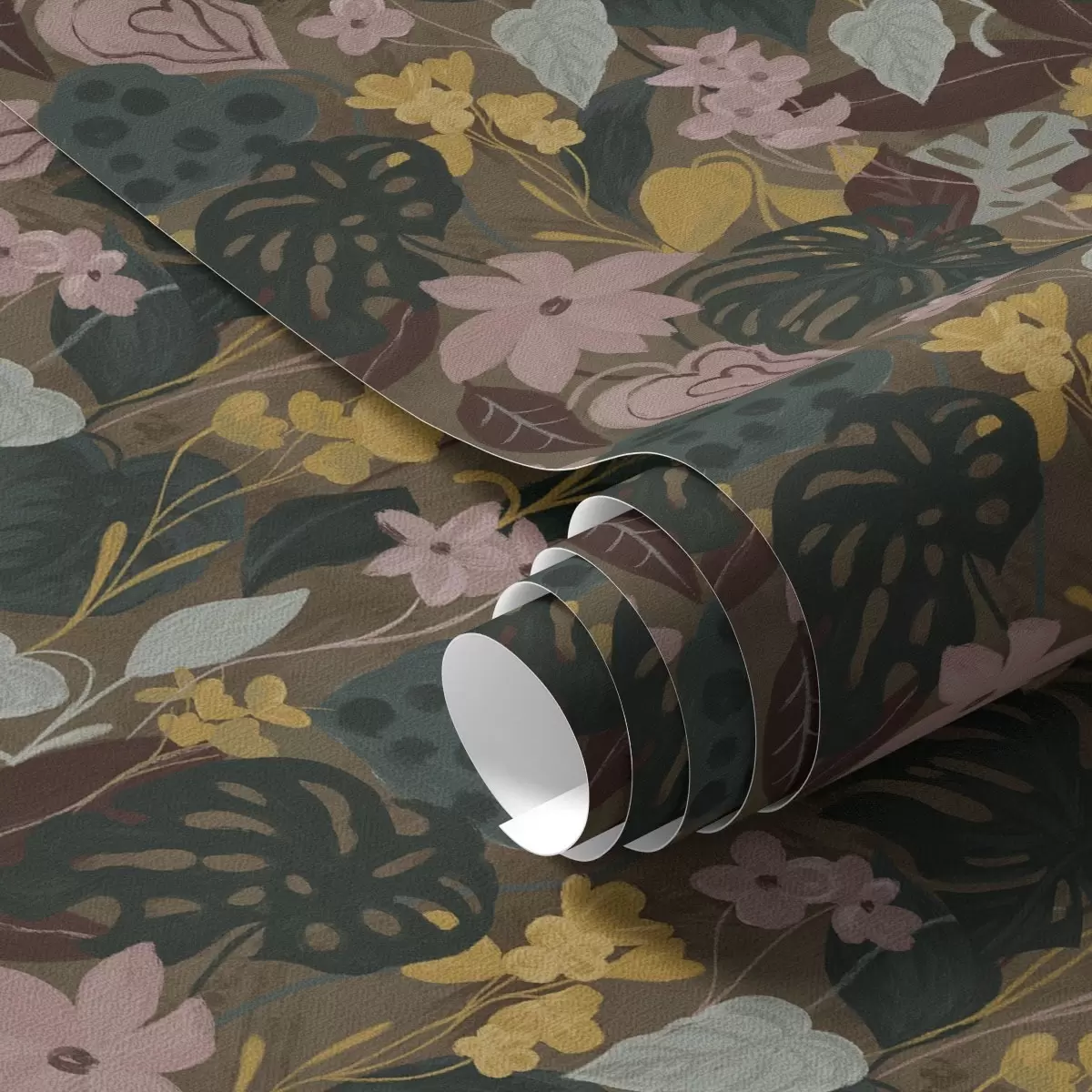Baggrunde Mørke tropiske blade og blomster i et tæt maleri tæt maleri Nr. a00244