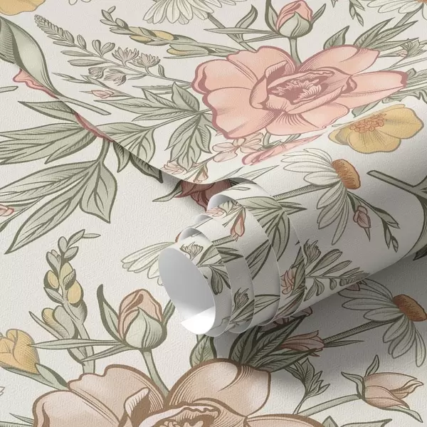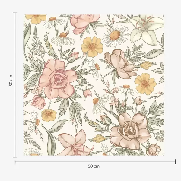Baggrunde Tusindfryd, pæoner, liljer og blade i sarte farver Nr. a00299