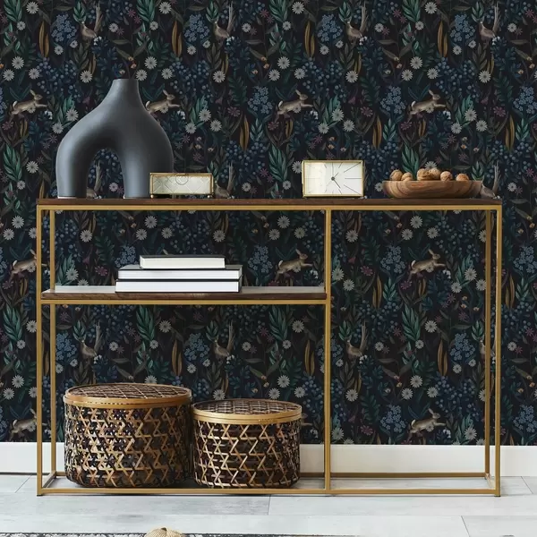 Baggrunde Mørk skov med blomster, hare og en fugl Nr. a00310