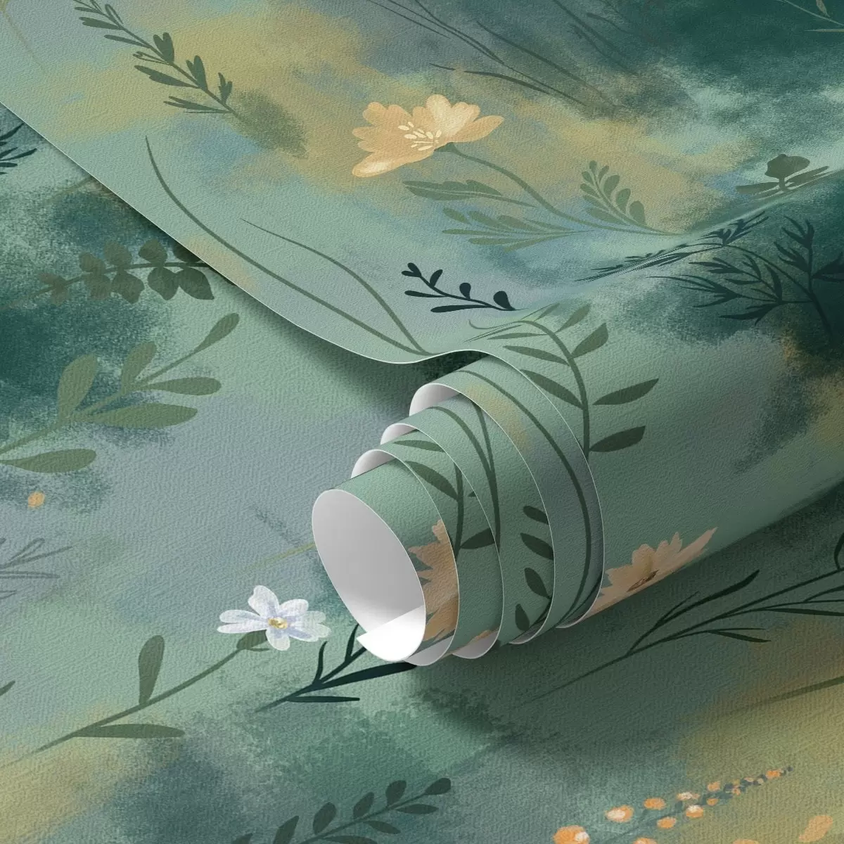 Baggrunde Akvarelabstraktion med blomster på grøn baggrund Nr. a00312