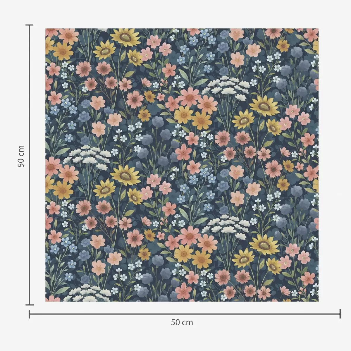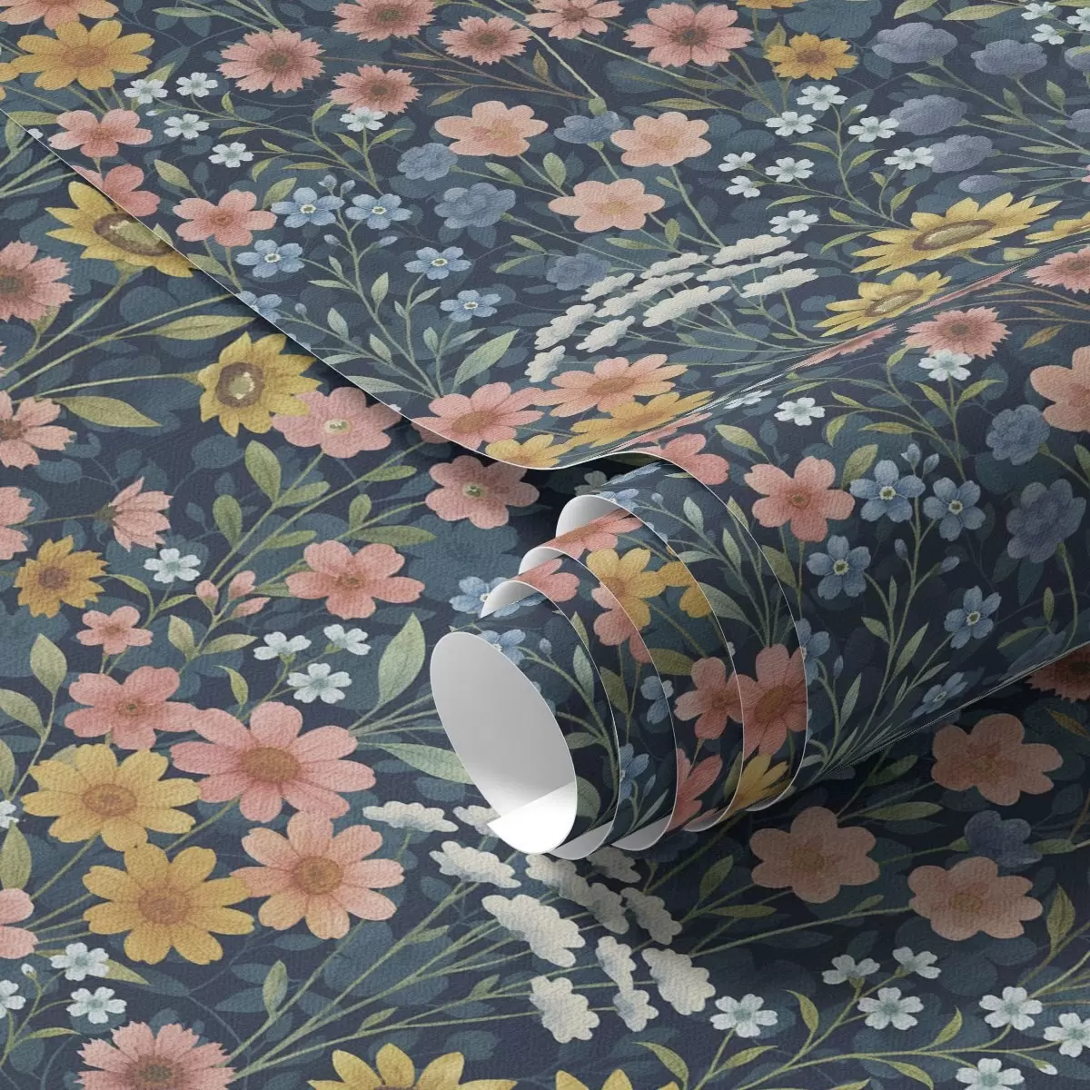 Baggrunde Farverige engblomster i akvarel på marineblå baggrund Nr. a00381