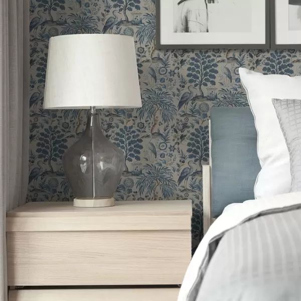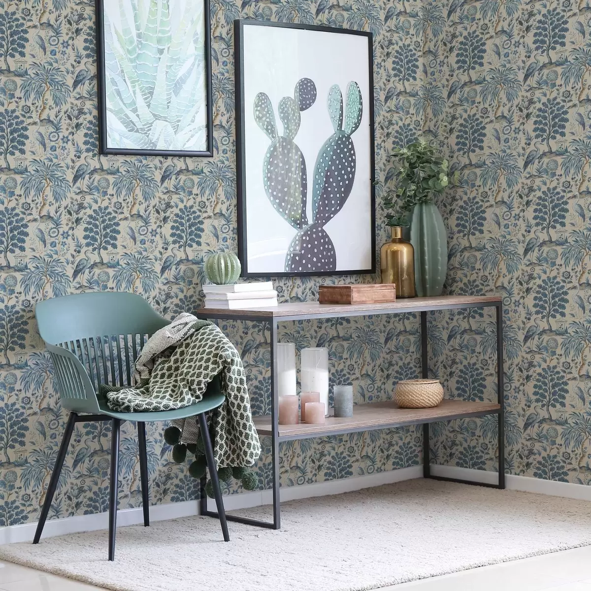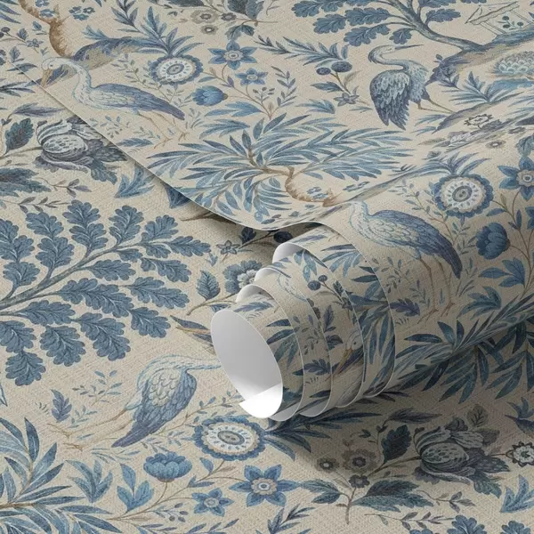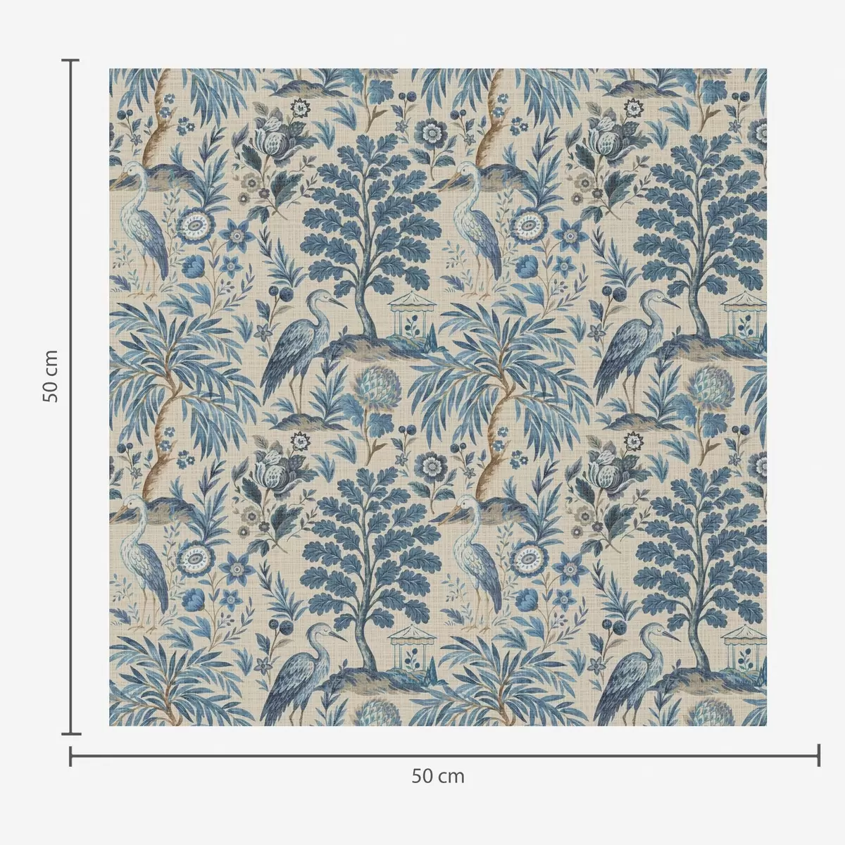 Baggrunde Toile de Jouy-stil med blå fugle og tropiske træer Nr. a00382