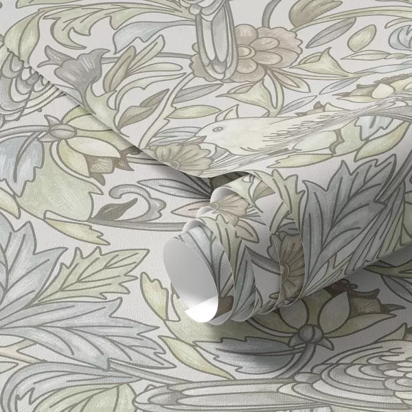 Baggrunde Art Nouveau-fugle og stiliserede pastelblomster Nr. a00385
