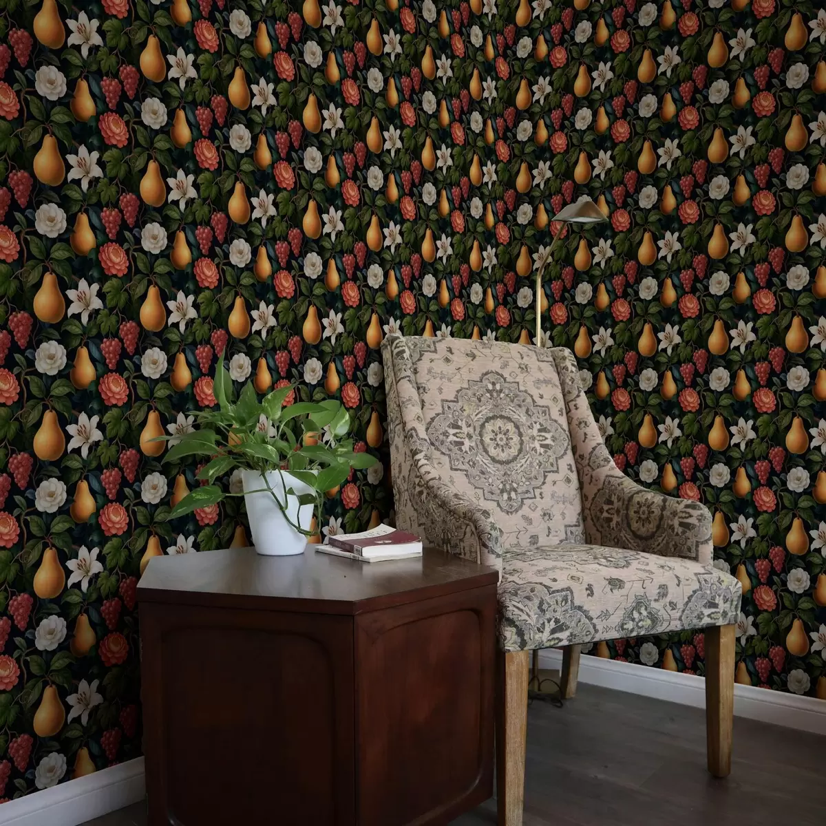 Baggrunde Barokke frugter og blomster på en dramatisk, mørk baggrund Nr. a00387