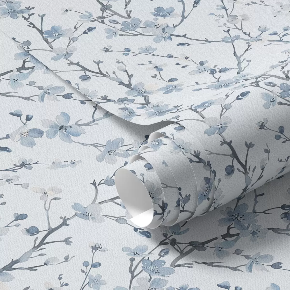 Baggrunde Blå kirsebærblomster på en hvid baggrund med blød kontrast Nr. a00399