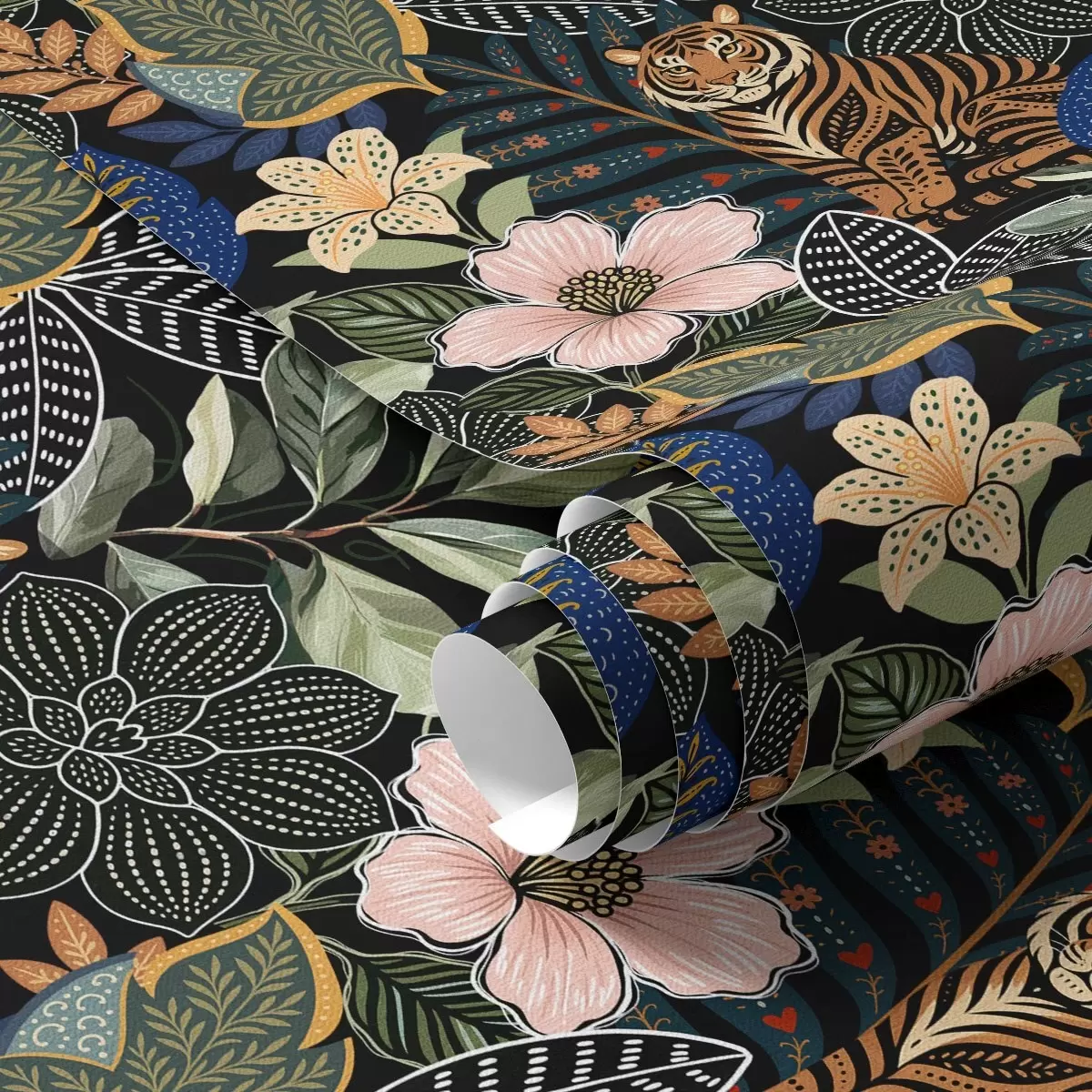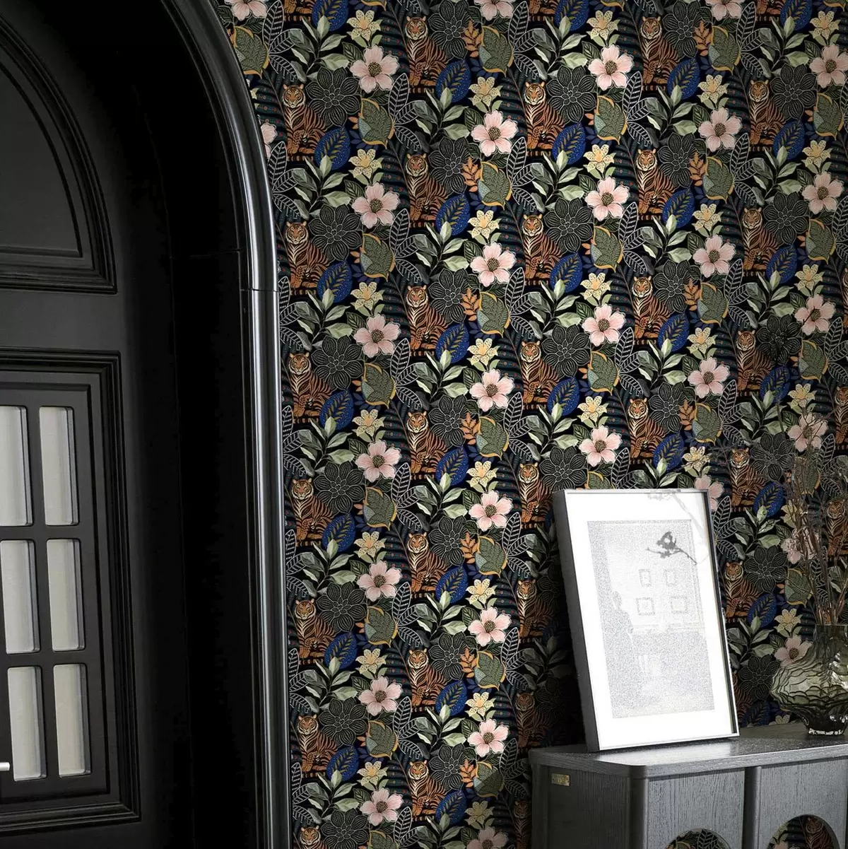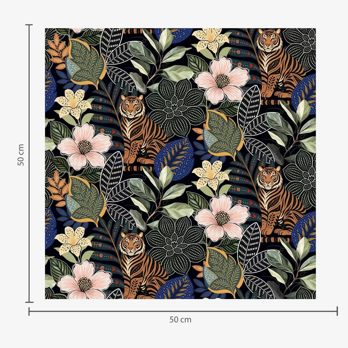 Baggrunde Tigre blandt lyse tropiske blomster og blade Nr. a00426