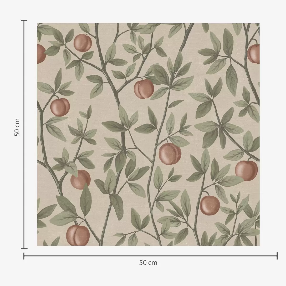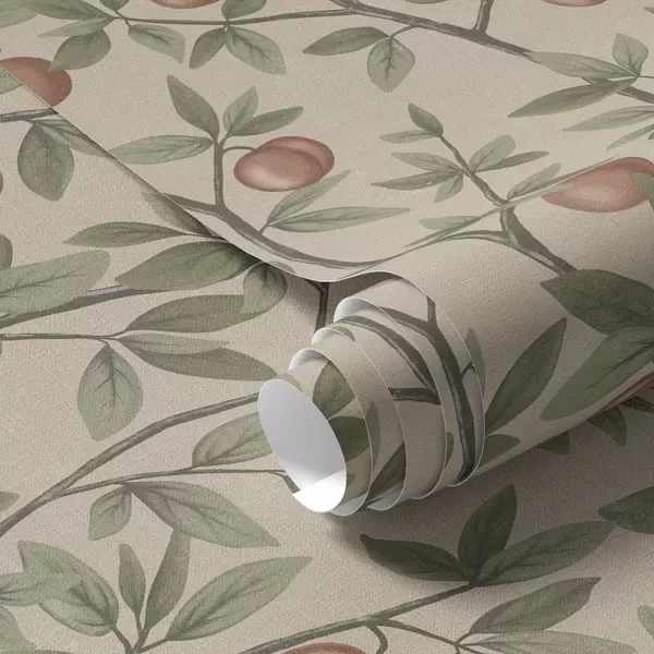 Baggrunde Ferskner på grene med grønne blade på beige baggrund Nr. a00429