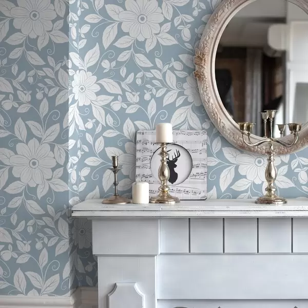 Baggrunde Hvid blomsterkontur på pastelblå baggrund Nr. a00452