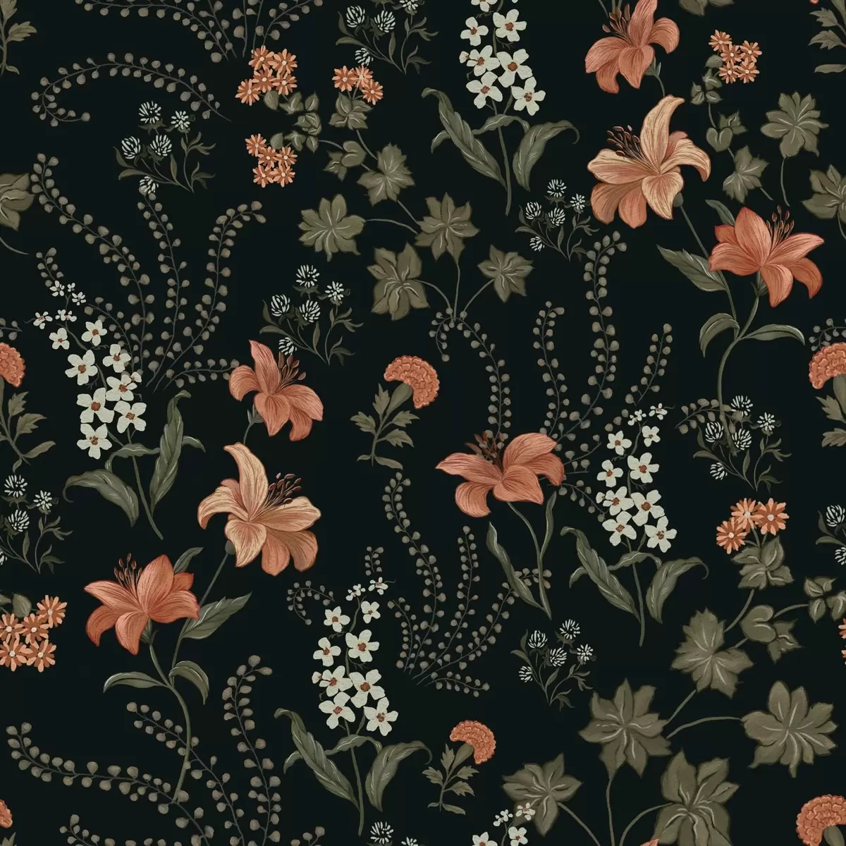 Baggrunde Orange liljer og små blomster på en sort baggrund Nr. a00463
