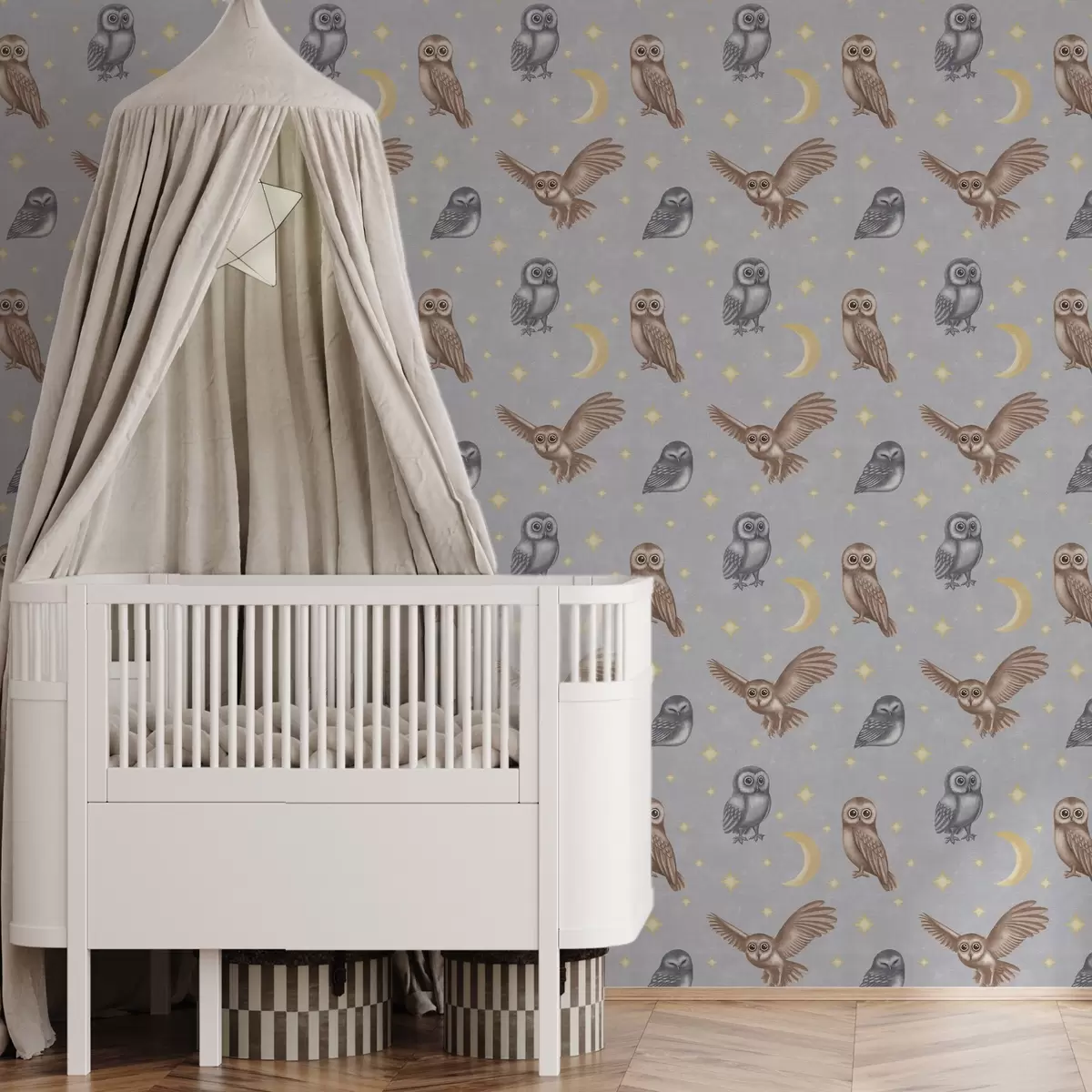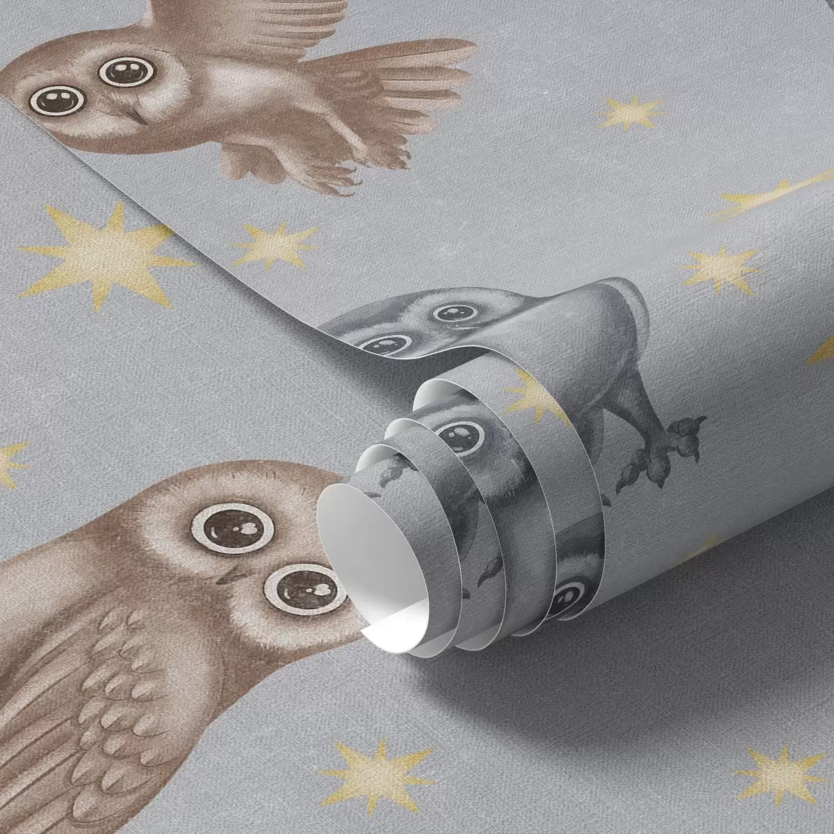 Baggrunde Ugler og stjerner på en grå nattehimmelbaggrund Nr. a00475