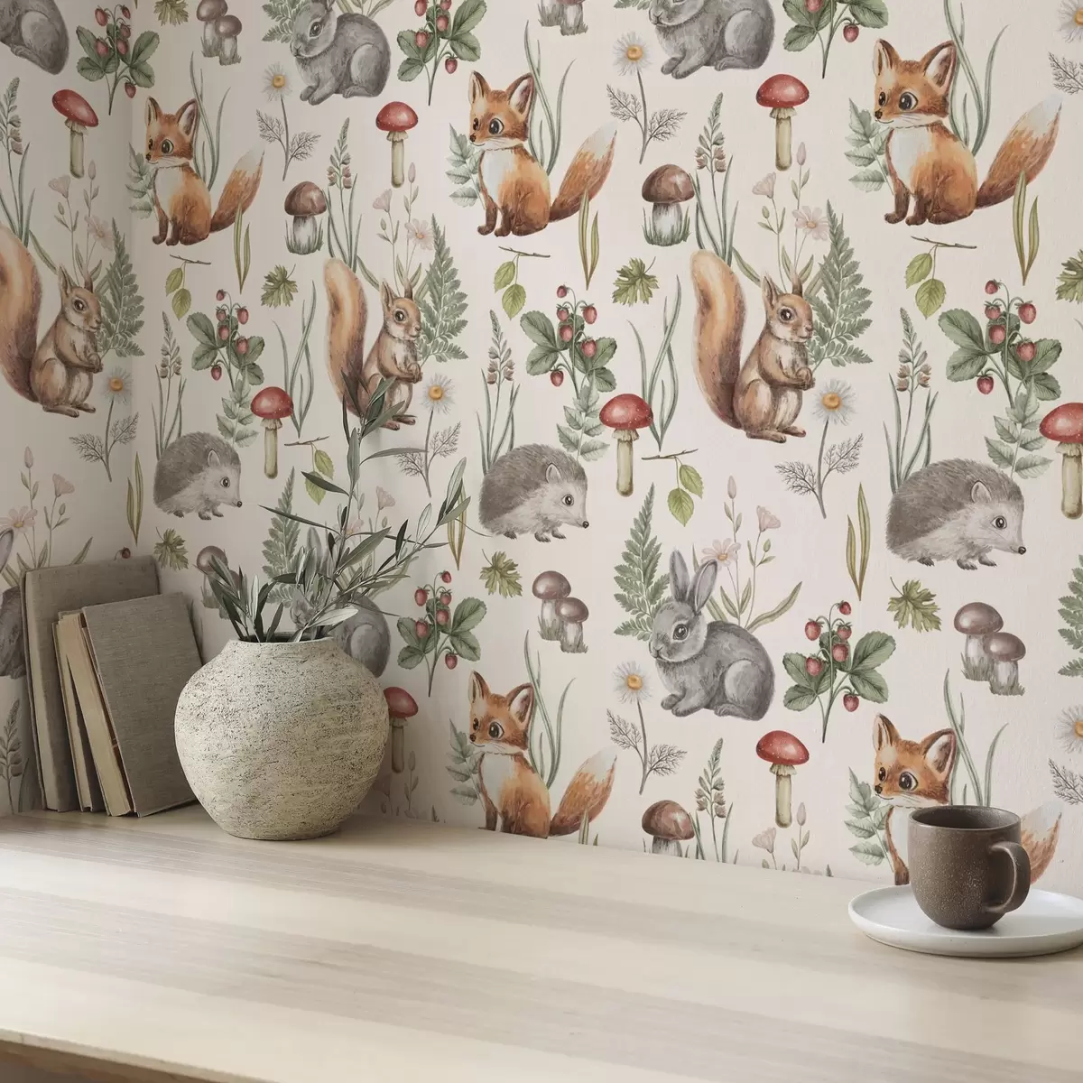 Baggrunde Skovens dyr, svampe og planter i eventyrlig stil Nr. a00477
