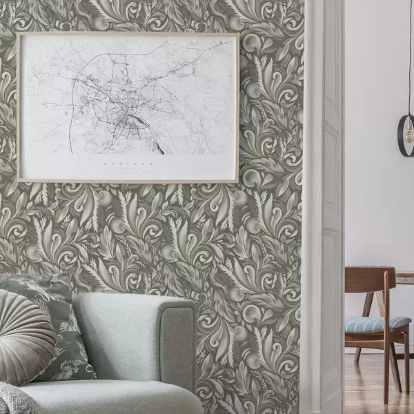 Baggrunde Akantusruller i en olivenbeige farvepalet Nr. a00501