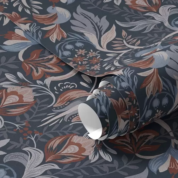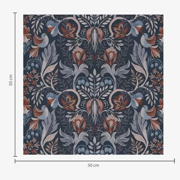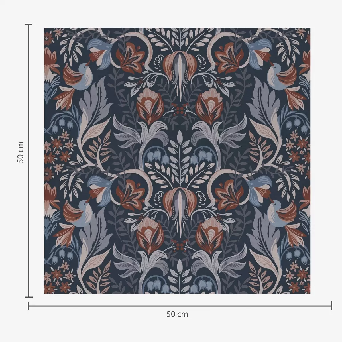 Baggrunde Folkemotiv med fugle, dyb indigo Nr. a00502v1