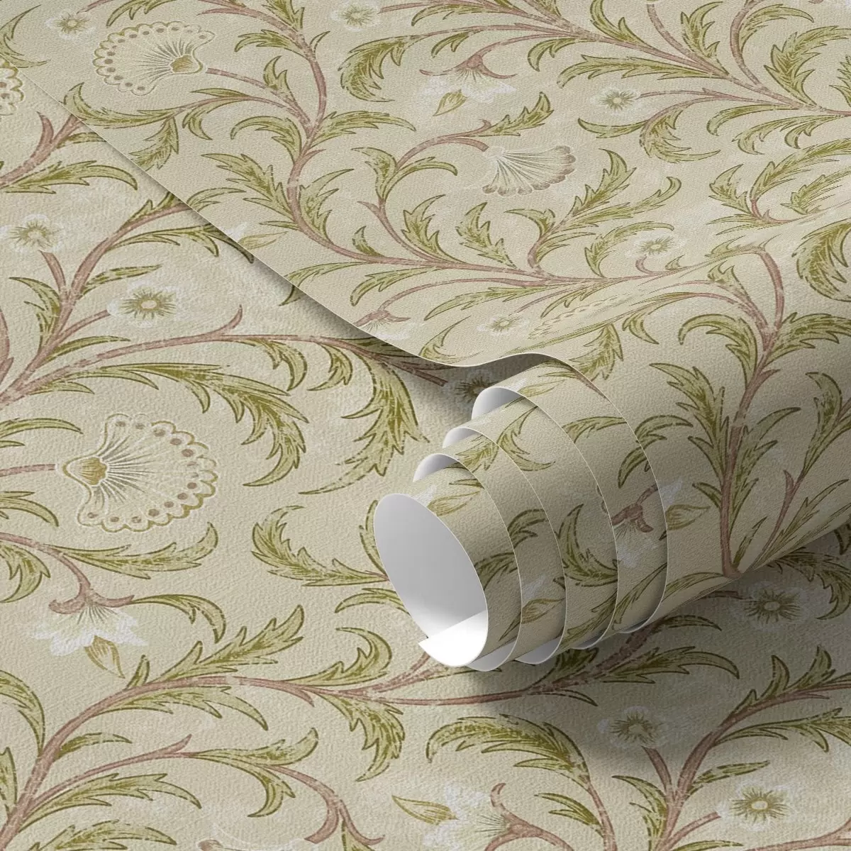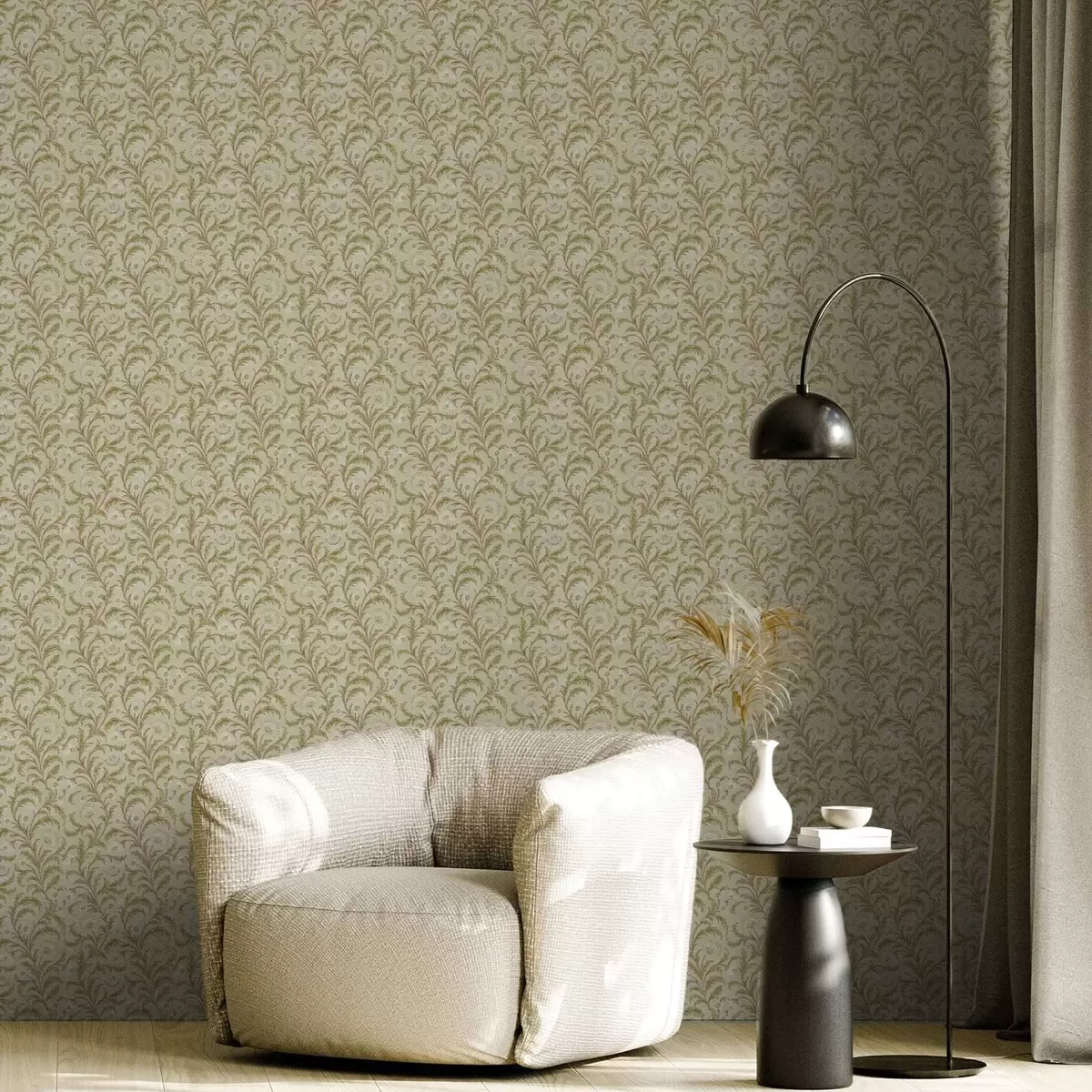 Baggrunde Vintage ornament med krøller og blomster, beige og olivenfarvet Nr. a00574