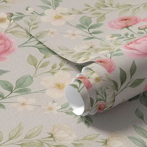 Baggrunde Akvarelpæoner og hvide blomster på gråbeige Nr. a00592