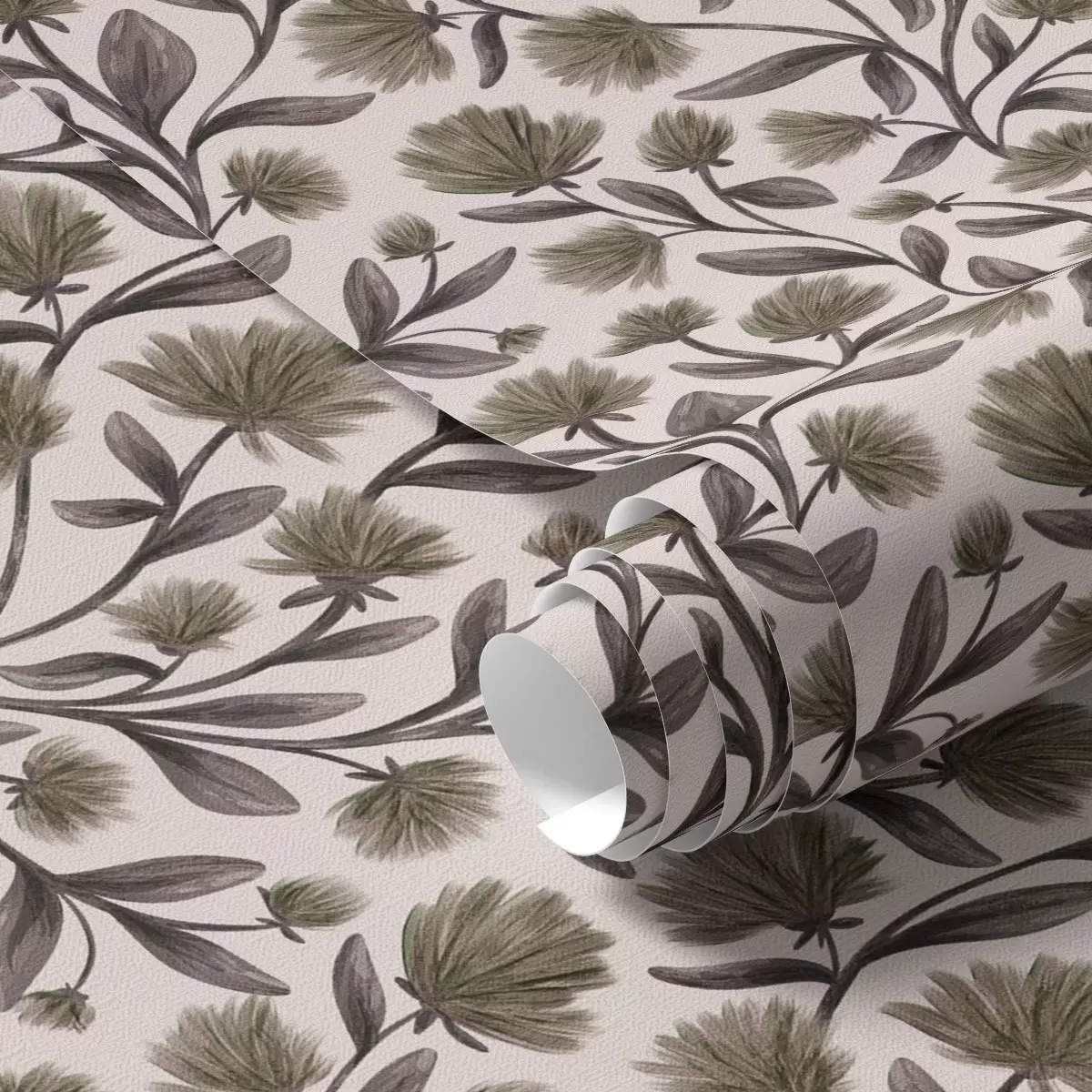 Baggrunde Vilde blomster i grå-olivenfarver på en cremefarvet baggrund Nr. a00623v1