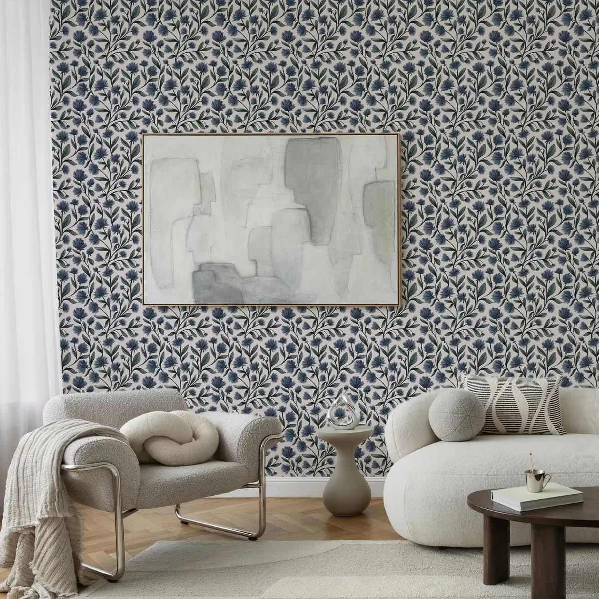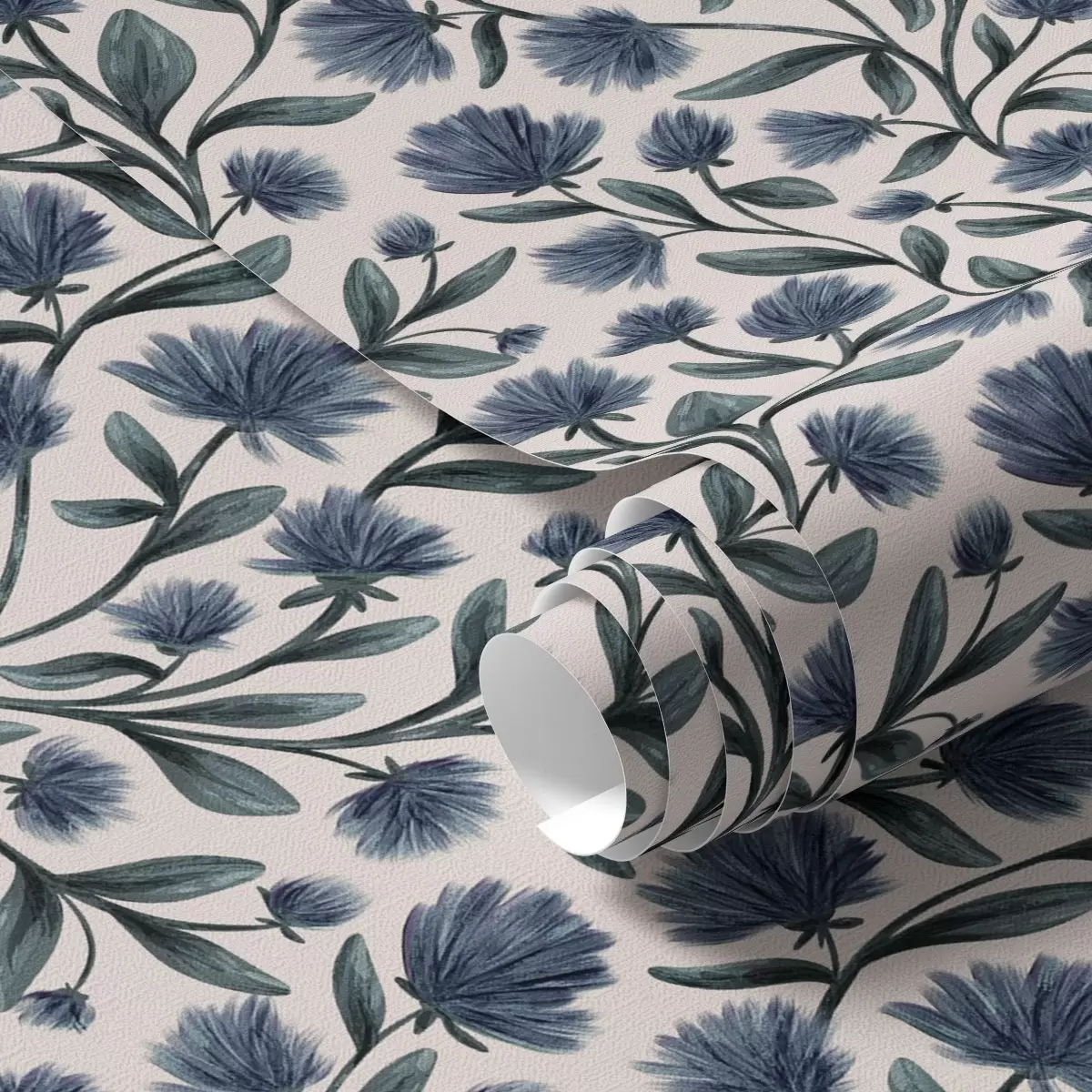 Baggrunde Vilde blomster i en blågrøn palet på en cremefarvet baggrund Nr. a00623v2