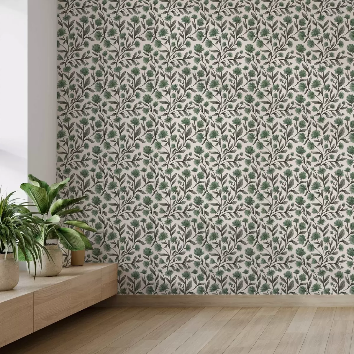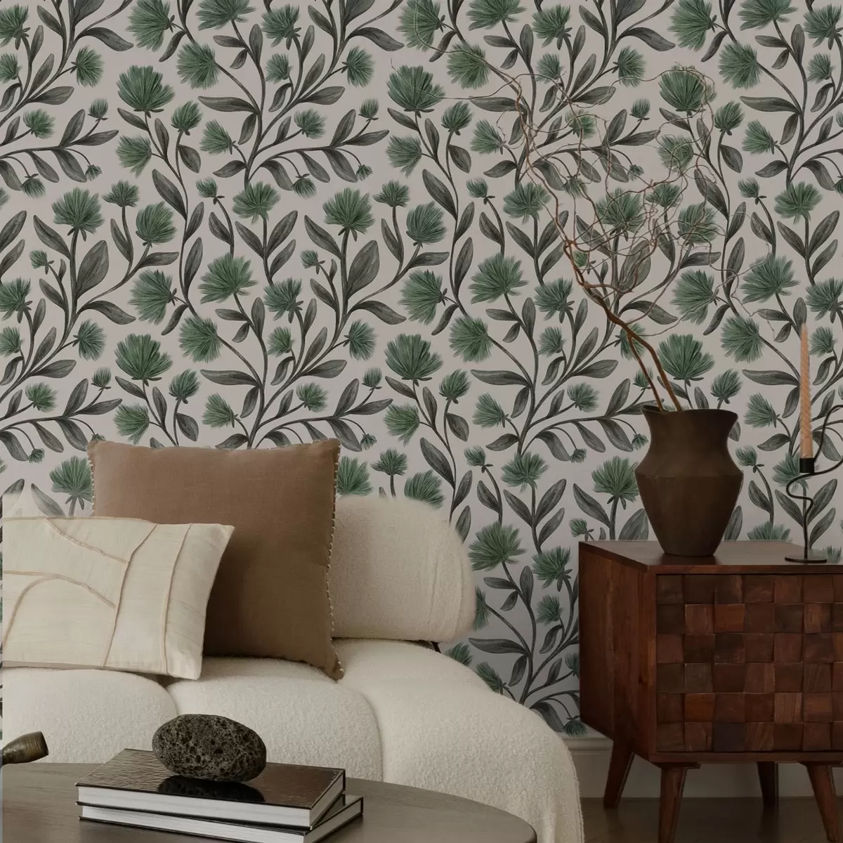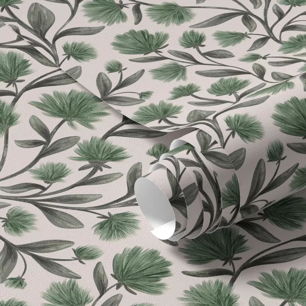 Baggrunde Vilde blomster i grønne nuancer på en cremefarvet baggrund Nr. a00623v3