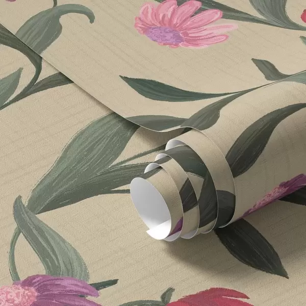 Baggrunde Pink-røde blomster på beige baggrund, håndtegnet tekstur Nr. a00631