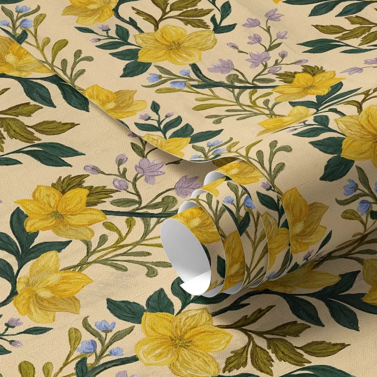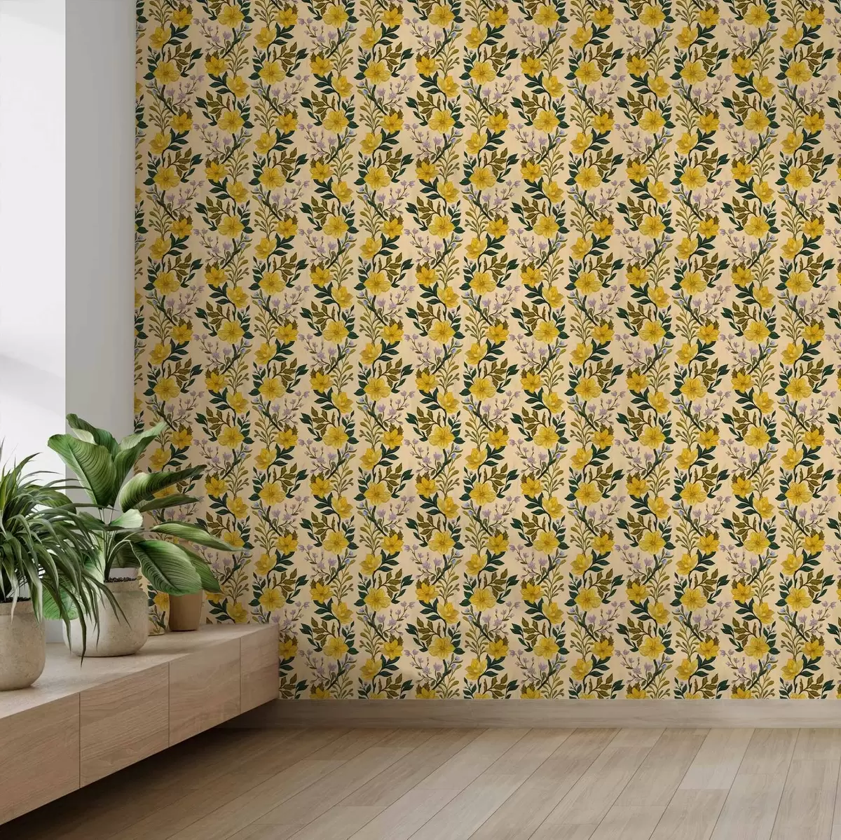 Baggrunde Gule blomster i lodrette guirlander på en cremefarvet baggrund Nr. a00632