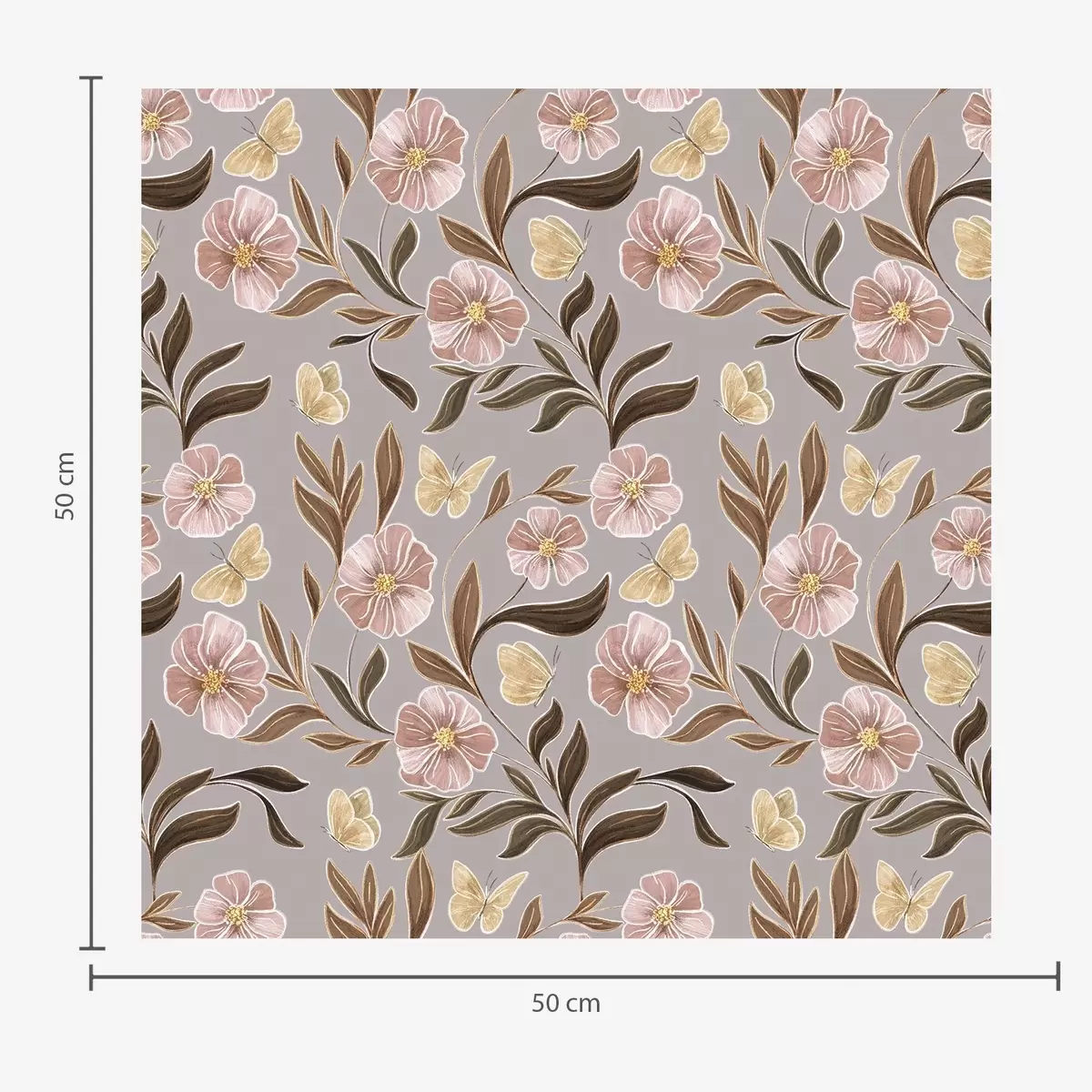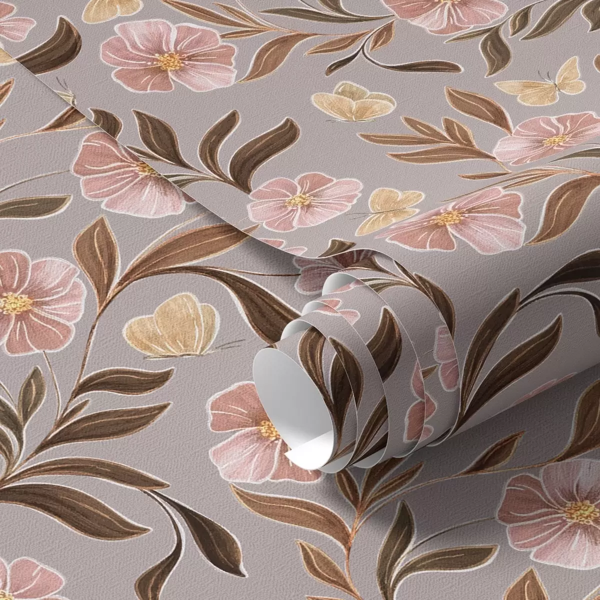 Baggrunde Lyserøde blomster og sommerfugle på en gråbeige baggrund Nr. a00633