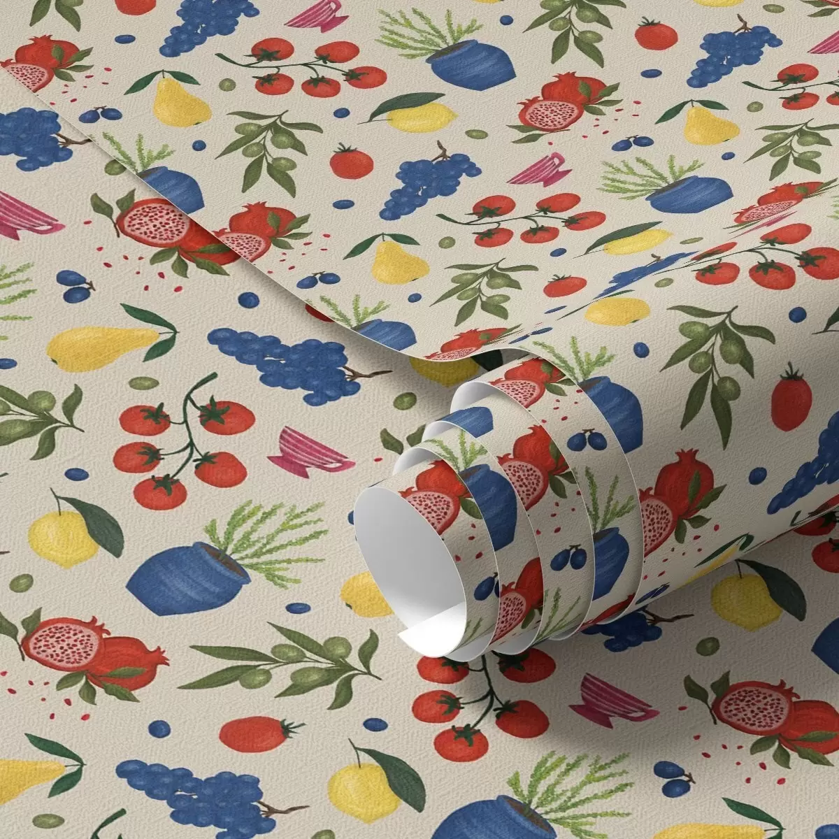 Baggrunde Livligt mønster med frugter, grene og vaser Nr. a00637
