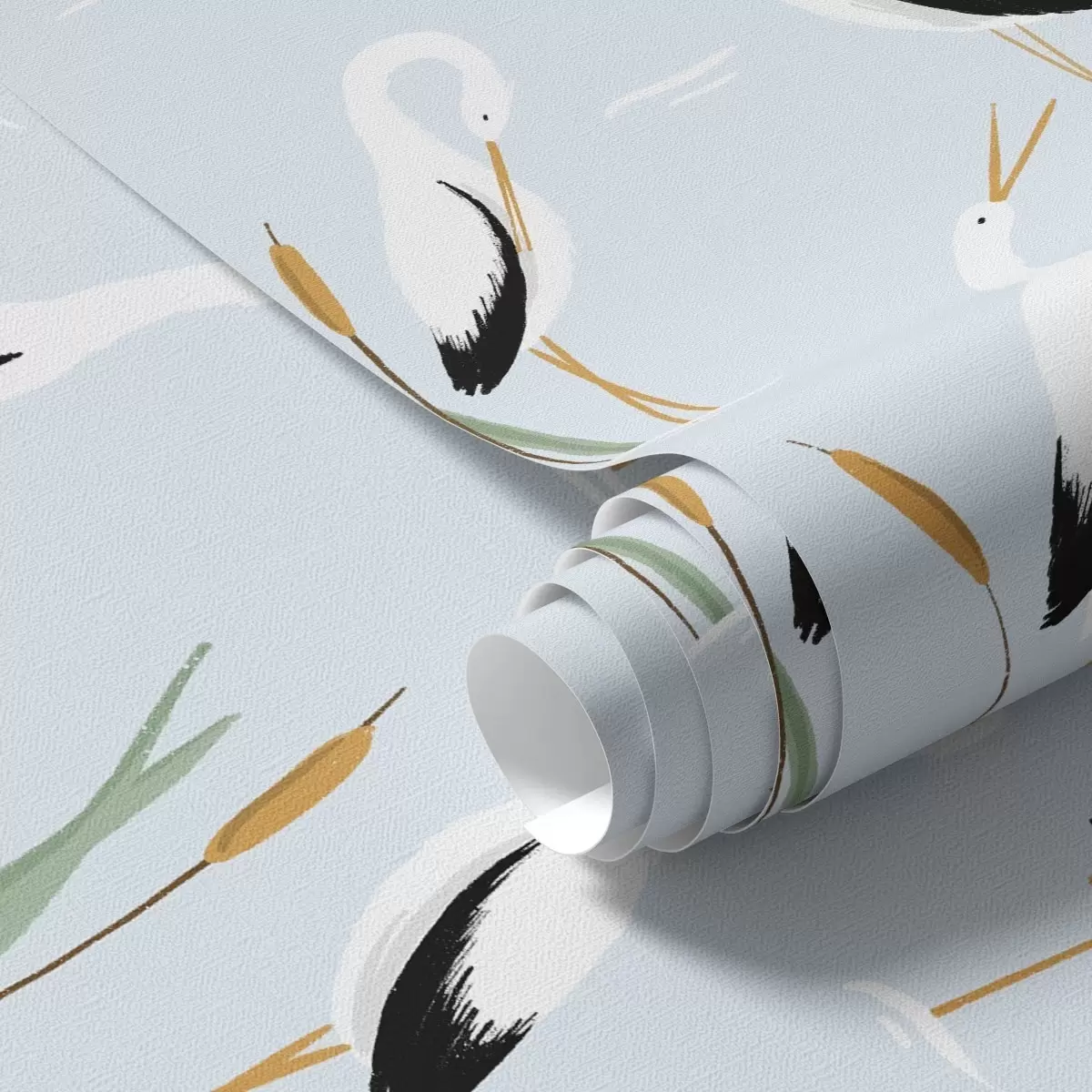 Baggrunde Hejrer blandt siv på en blid blå baggrund Nr. a00650v3