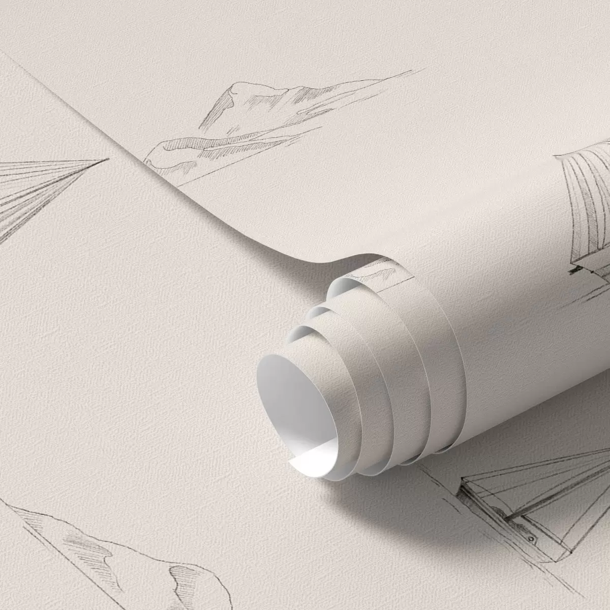 Baggrunde Skitser af yachter og øer, varm cremefarvet baggrund Nr. a00654v1