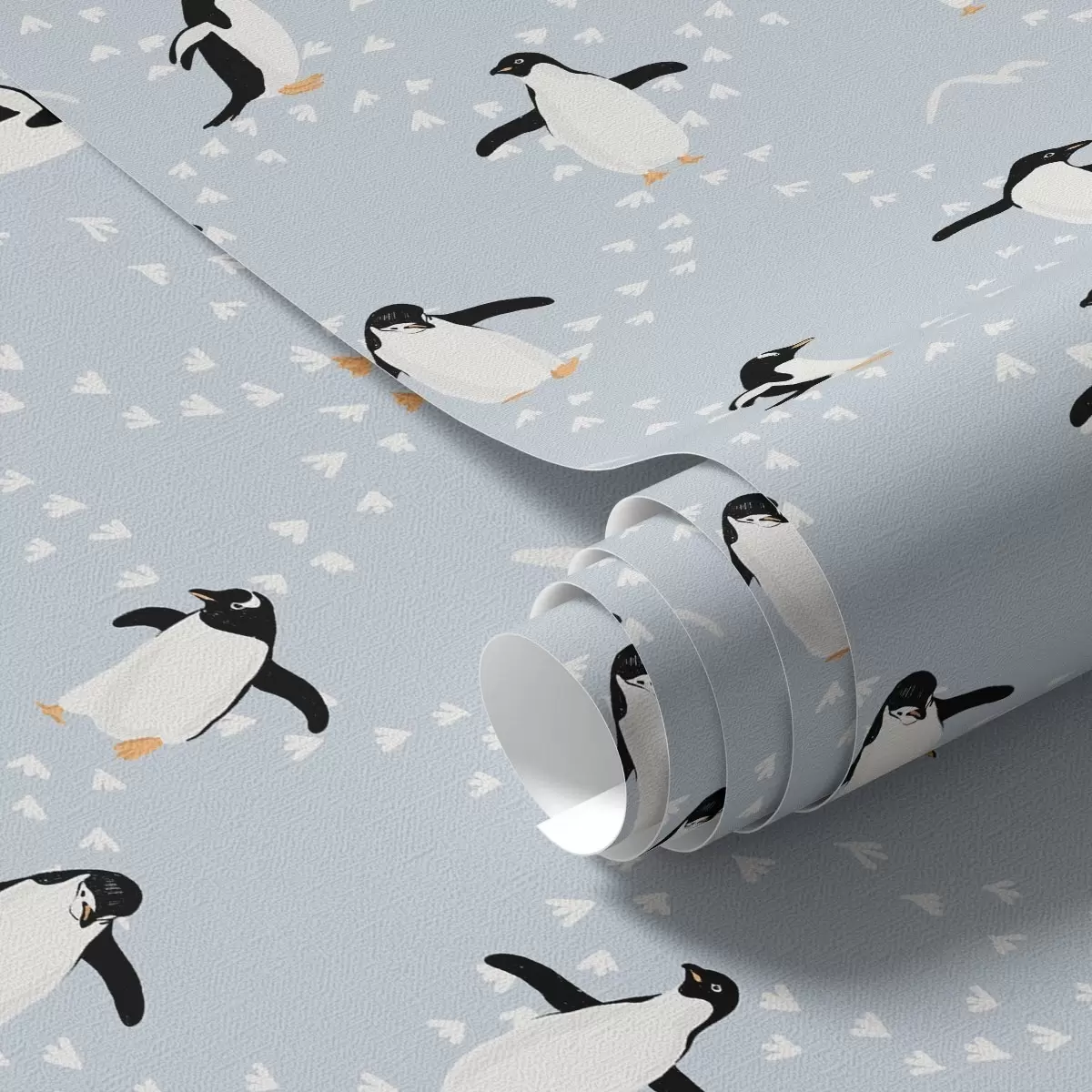 Baggrunde Pingviner på lyseblåt, rytmen af fodaftryk Nr. a00655v2