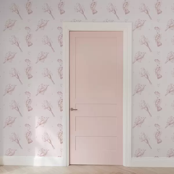 Baggrunde Fugletøje: skitserede fugle, blød lyserød baggrund Nr. a00656