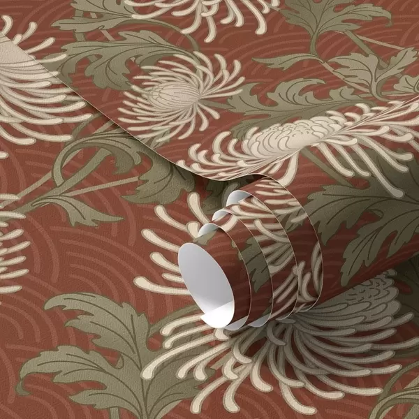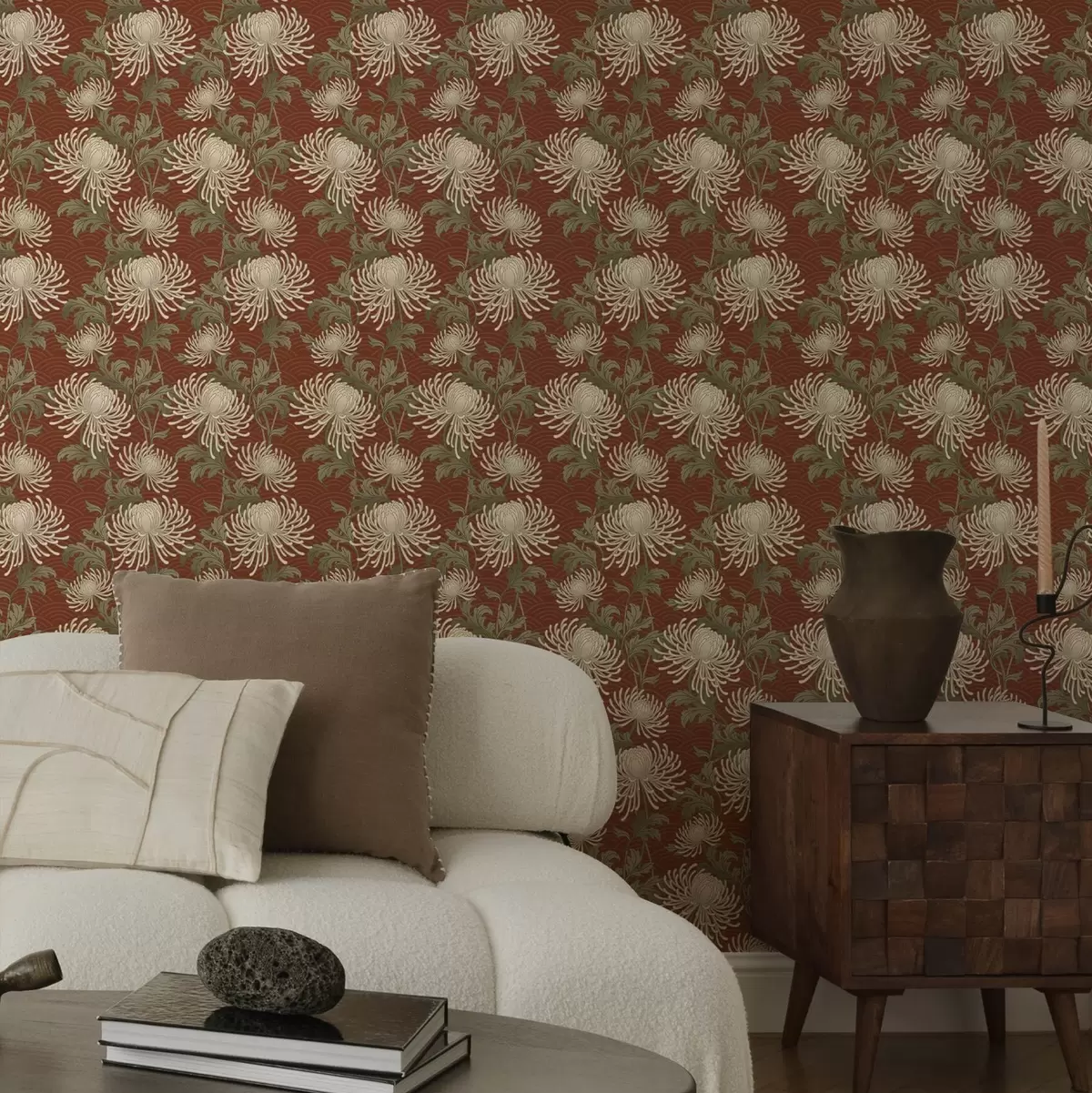 Baggrunde Cremefarvede krysantemum på terrakottafarvet baggrund, asiatisk stil Nr. a00693