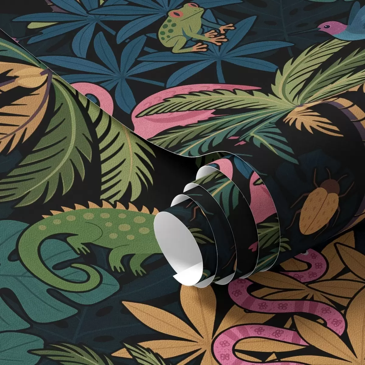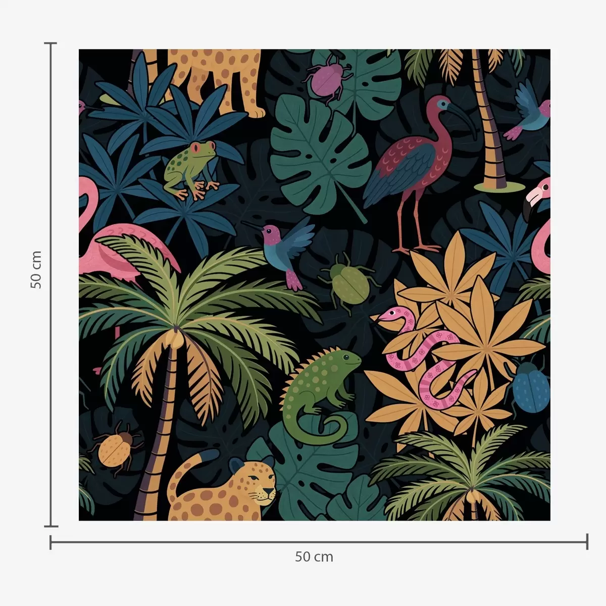 Baggrunde Lyse tropiske dyr blandt blade på en mørk baggrund Nr. a00701