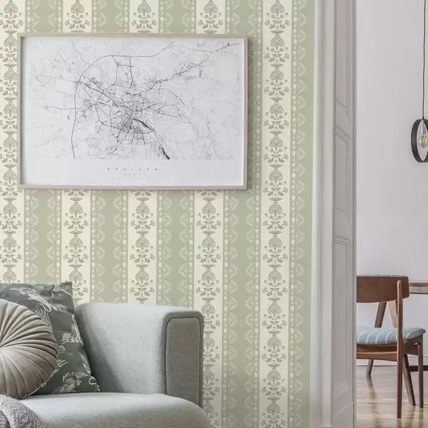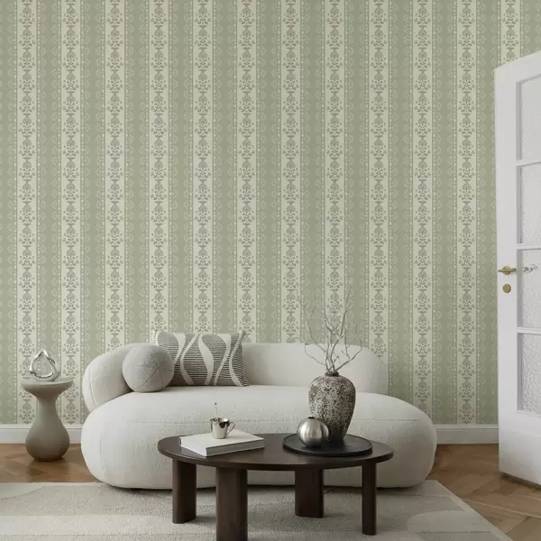 Baggrunde Stribet ornament med blomstersøjler i salviefarver Nr. a00719