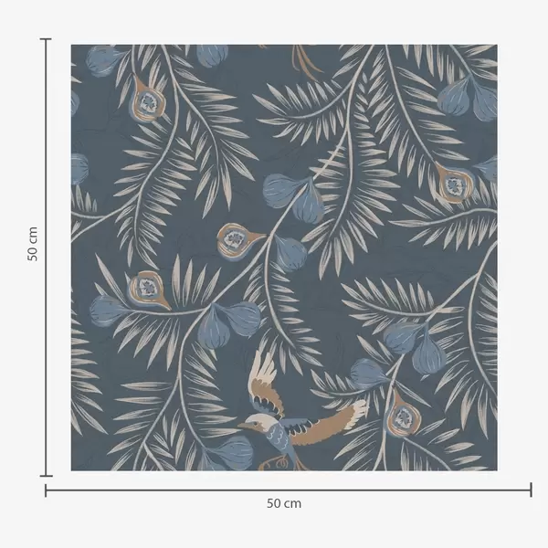Baggrunde Fugl blandt blå frugter og palmeblade, indigo Nr. a00726