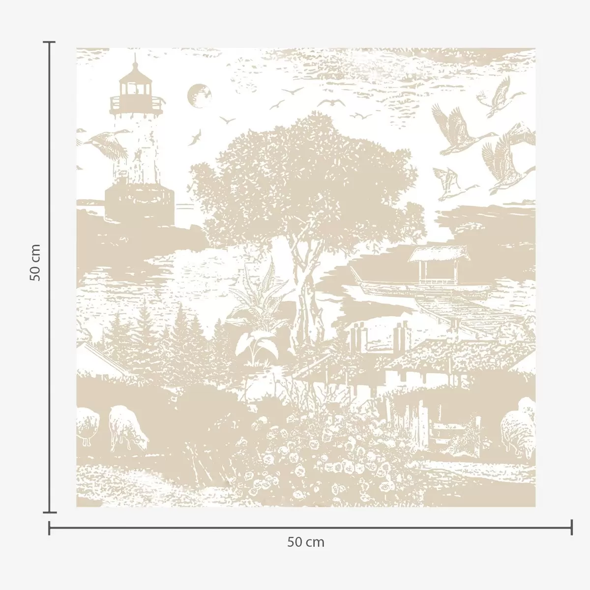 Baggrunde Scene med fyrtårn, træer og huse i sienna Nr. a00739